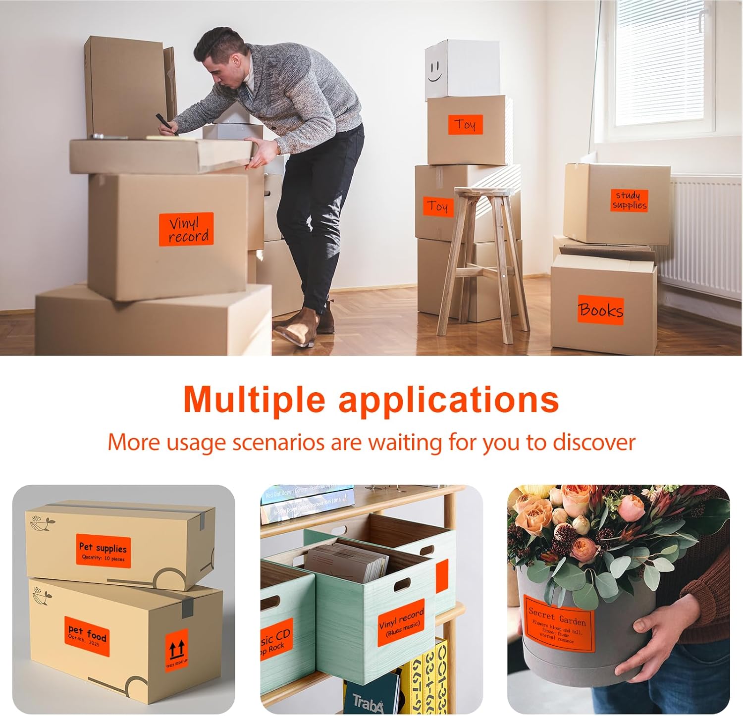 - Writable and Printable: Blank surface lets you write your own message in pen, pencil, or marker. You can also use it for printers. Before using the label, please adjust the printer to ensure that the template size is the same as the label (3 x 5 inches)