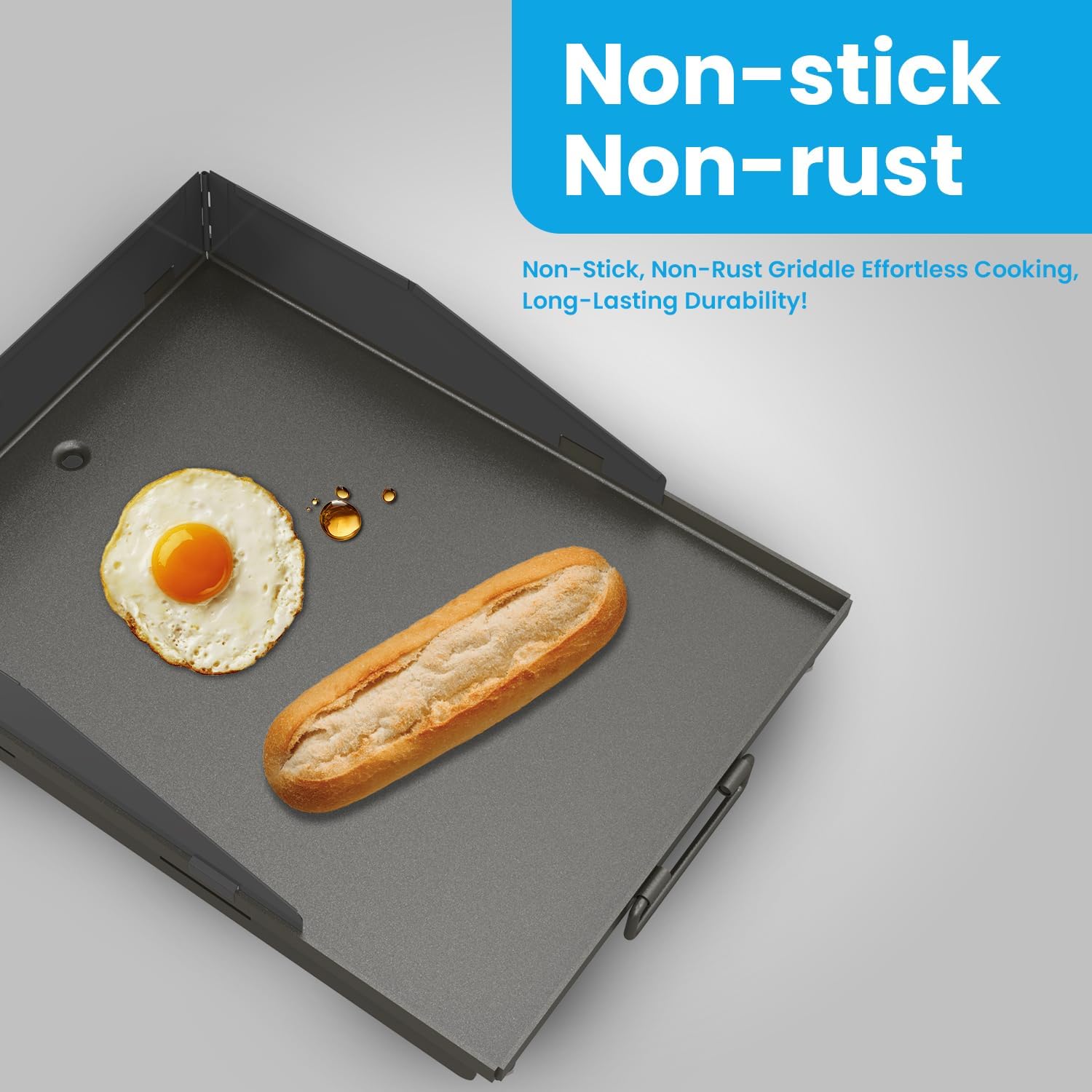 17.92" x 13.77” Flat Top Griddle for Outdoor Cooking – Durable Cast Iron Griddle for Stovetops – Premium Heavy Duty Stovetop Griddle Plate for BBQ Gas Grill - Black