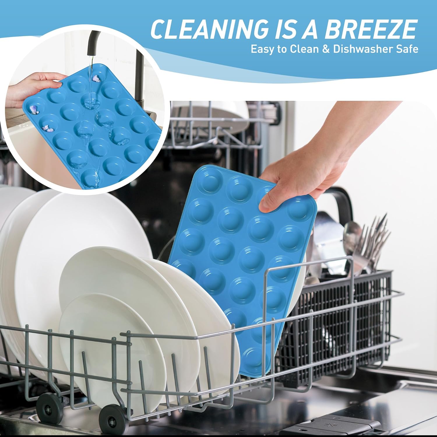 - Food Grade Silicone Muffin Tray: Safe for the oven, microwave, dishwasher, fridge, and freezer. With an impressive heat resistance range from -104°F to 446°F, it’s perfect for all your favorite baked goods. thick walls prevent heat transfer to countertops – safer than other thin plastic baking cupcake muffin pans. Food grade silicone of our baking cupcake muffin pans, maintaining 99% "like-new" appearance after heavy use.