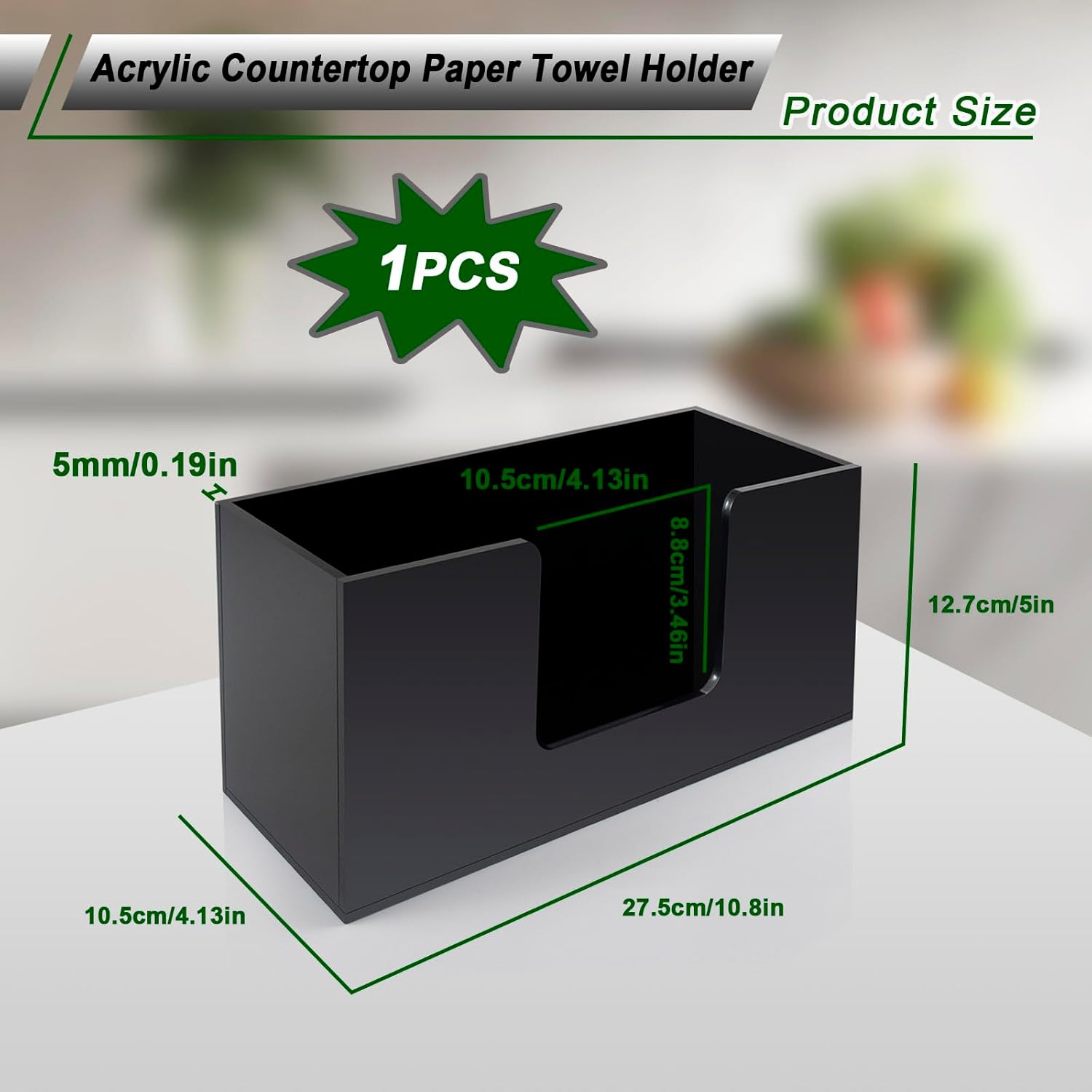 - Size for Easy Using: The acrylic paper towel holder measures approximately 10.7 x 5 x 4.1 inches/27.5*12.7*10.5cm, portable and lightweight size won't take up too much space on your desktop, the paper towel holder can keep your desktop clean and tidy (please check the size before purchase)