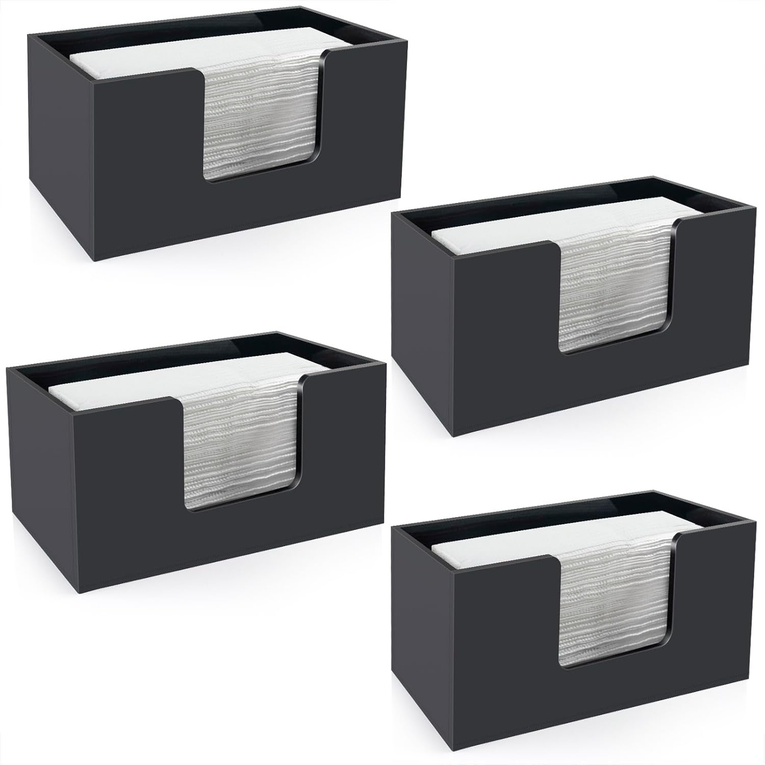 4Pack Paper Towel Holder Countertop, Acrylic Bathroom Paper Towel Holder, Black Napkin Holder for Kitchen, Countertop Multifold Z-fold C-fold,Trifold Paper Hand Towel Dispenser for Bathroom Toilet (4)
