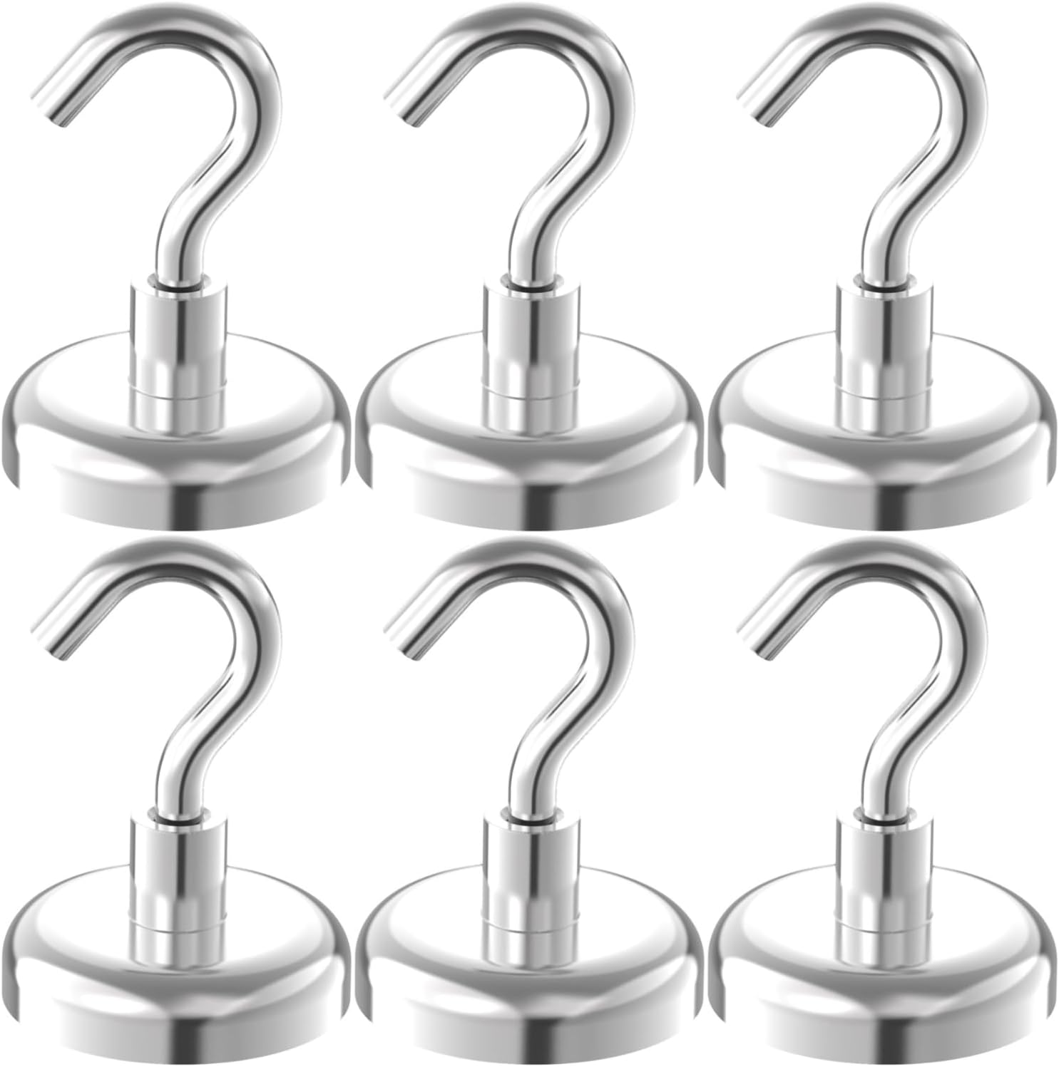 150lb Heavy Duty Magnetic Hooks with 1.42" Dia Magnetic Base - 6Pack, Neodymium Magnets with Hook for Kitchen, Workplace, Super Strong Cruise Magnet Hook for Hanging, Magnetic Hanger