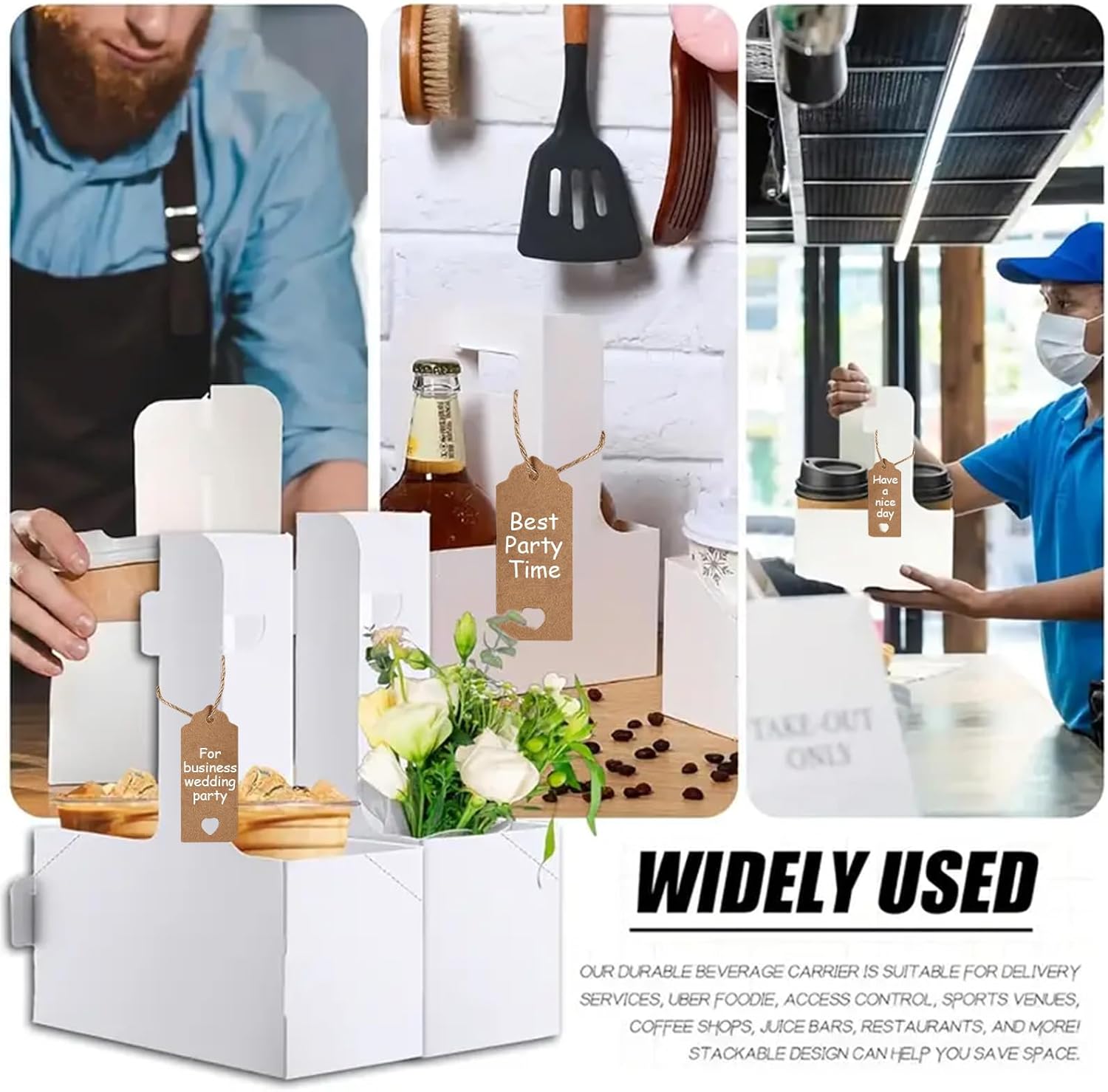 - High-quality material: Made of 350 Made of 100 grams of paper, the beverage holder is sturdy and durable, ensuring safety, reliability and durability. The waterproof function ensures that the contents will not accidentally spill. This beverage cup holder is ideal for takeout or take-out drinks, and can safely transport drinks and food