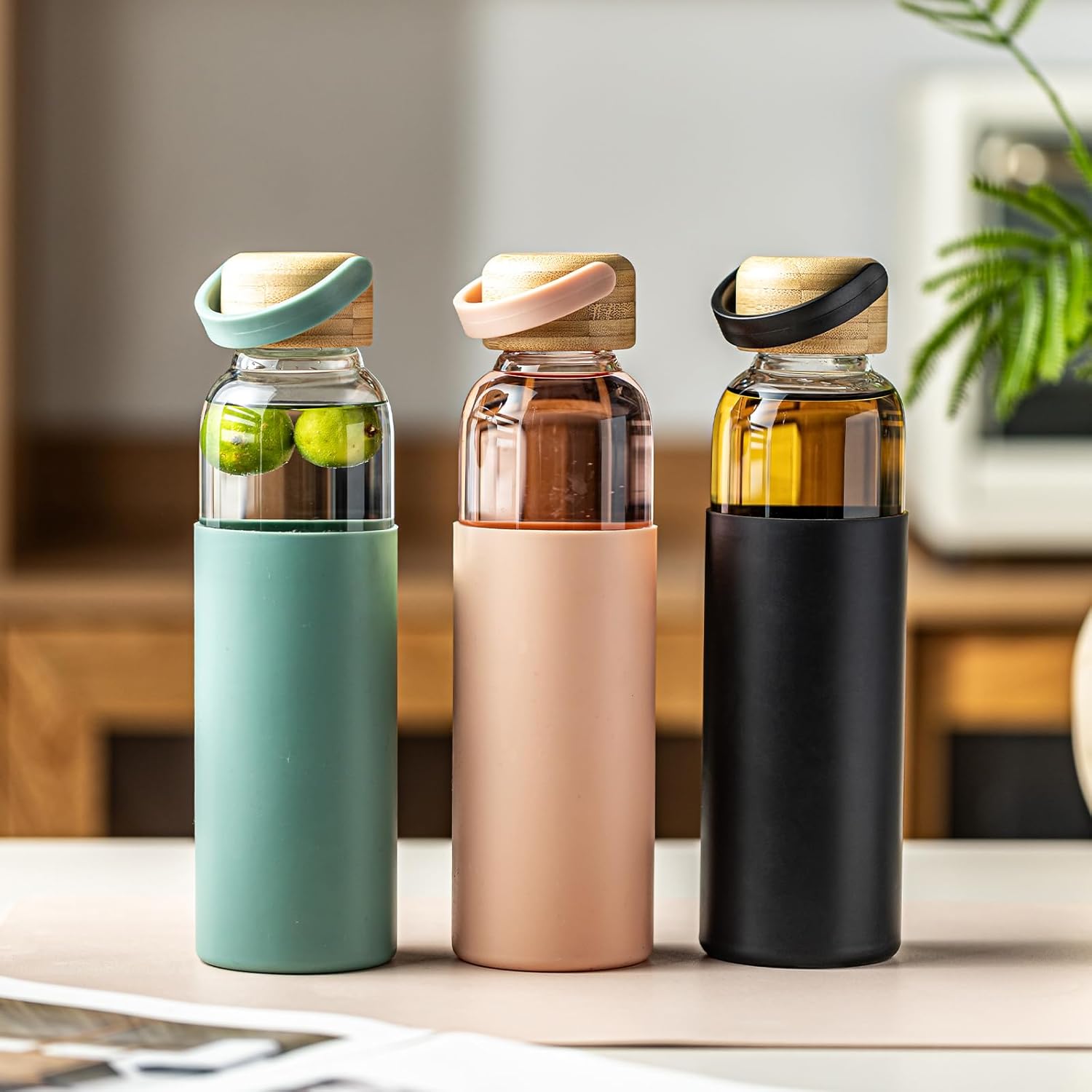 - Multi-Scene Versatility:Designed for work, travel, fitness, and outdoor adventures. Use it for water, iced tea, infused drinks, or smoothies. The transparent glass lets you track intake and enjoy vibrant beverage colors
