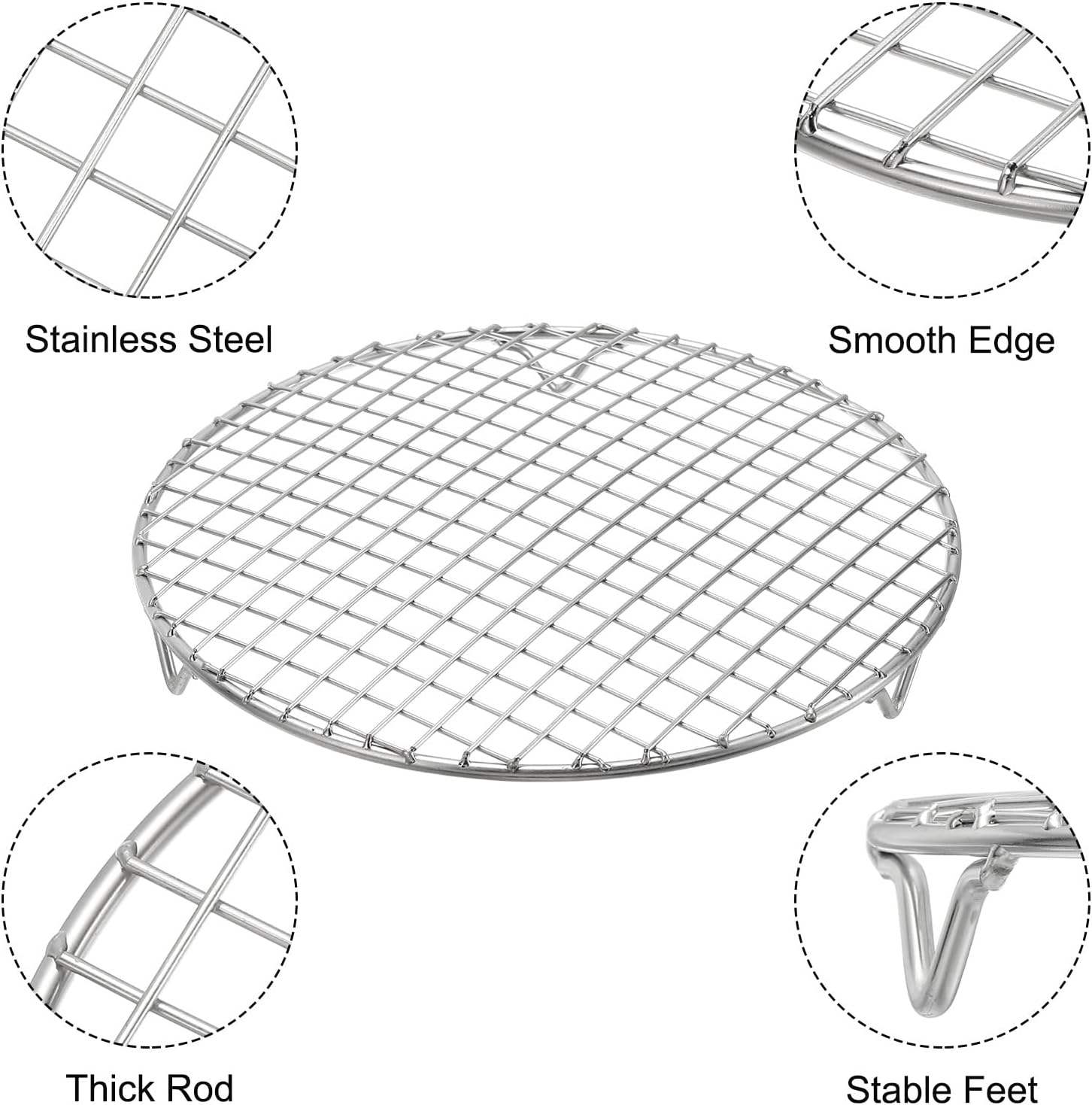 uxcell 2 Pcs Round Cooking Rack with Legs, Dia 9.4 Inch 304 Stainless Steel Barbecue Grill for Cooking Baking Barbecue Air Fryer Racks, Silver