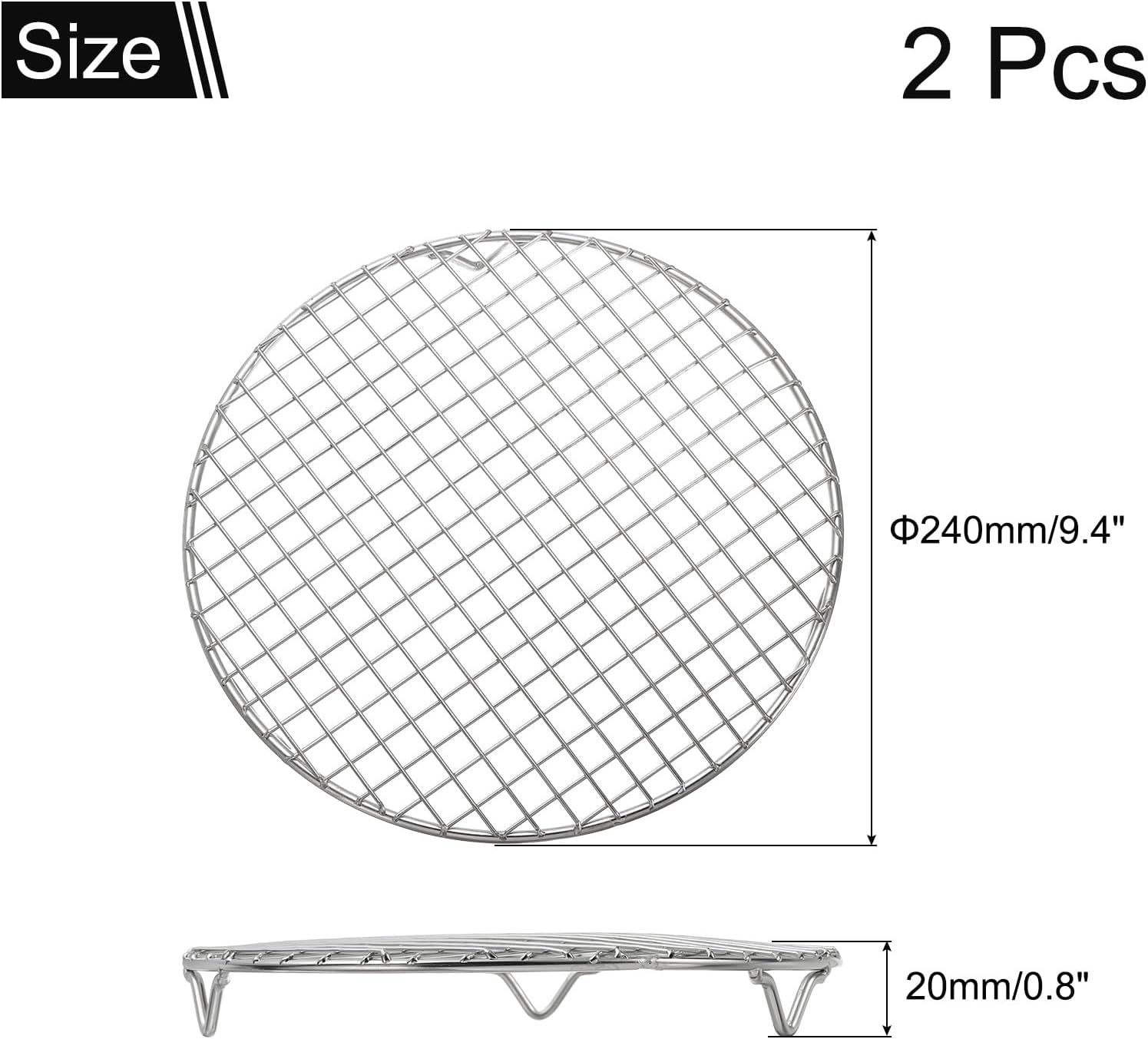 - Package & Size: You will get 2 pcs round cooking rack, with the diameter is 240mm/9.4 inch, and the height is 25mm/1 inch, which is suitable for home and outdoor use.