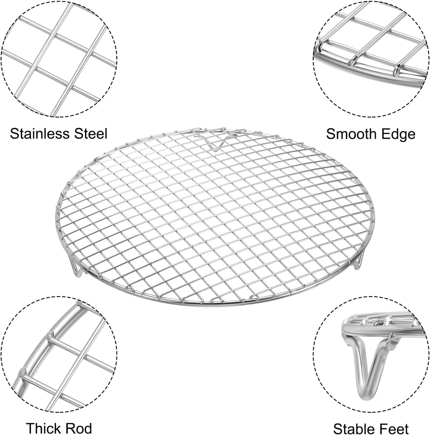 uxcell Round Cooking Rack with Legs, Dia 11.6 Inch 304 Stainless Steel Barbecue Grill for Cooking Baking Barbecue Air Fryer Racks, Silver