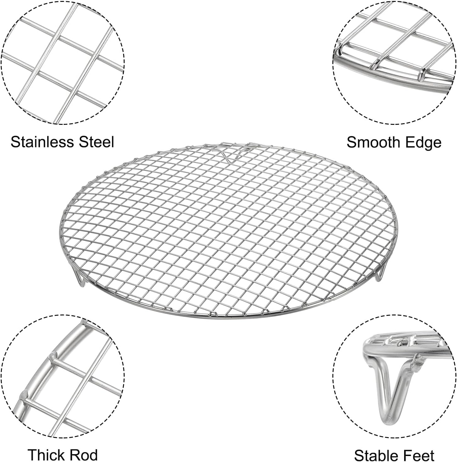 uxcell 2 Pcs Round Cooking Rack with Legs, Dia 13.8 Inch 304 Stainless Steel Barbecue Grill for Cooking Baking Barbecue Air Fryer Racks, Silver