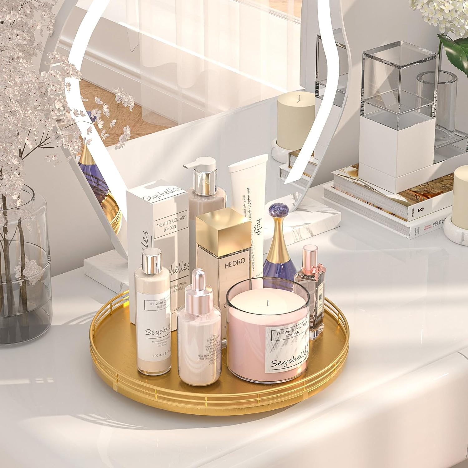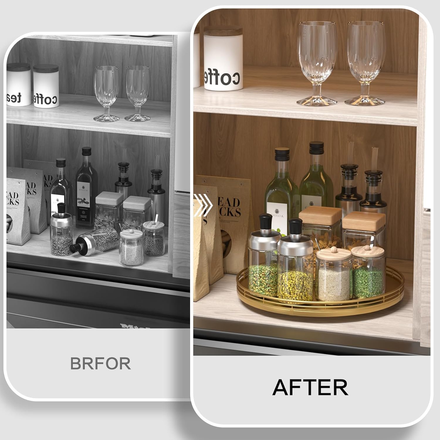 - Thoughtful Design: The turntable gold tray features a smooth and silent 360Β°rotation; Bottom slip-resistant pads for stability and protect your countertop from scratches; Raised edges on each organizer tray to keep items from falling out; Easy to use, no installation required