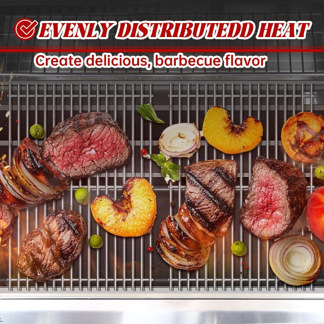 - Package include:2 pack Grill grate.5 pcs Flavorizer Bars and 3 pcs Heat Deflectors, Easy to install and replace.