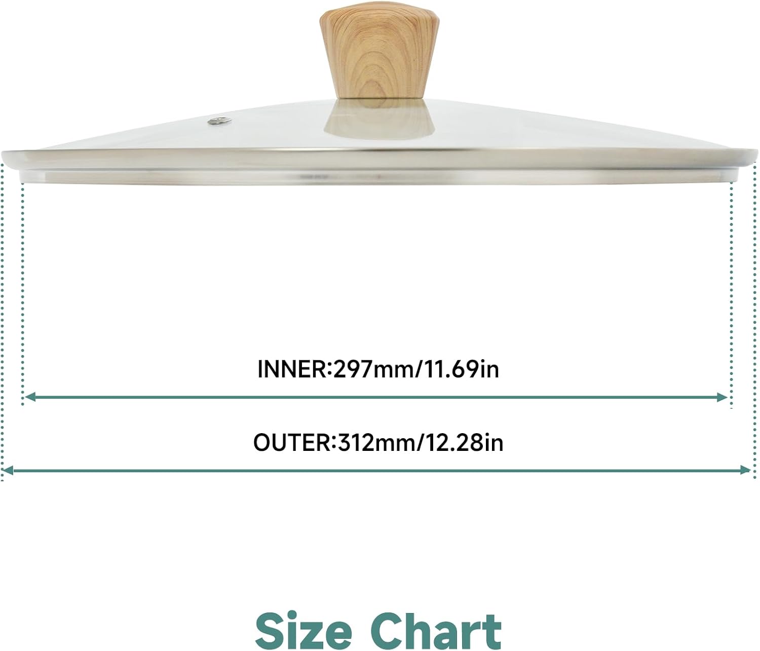 - DIMENSION: Inner 297mm/11.69in to Outer 312mm/12.28in, please CHECK the dimension of your pan before ordering