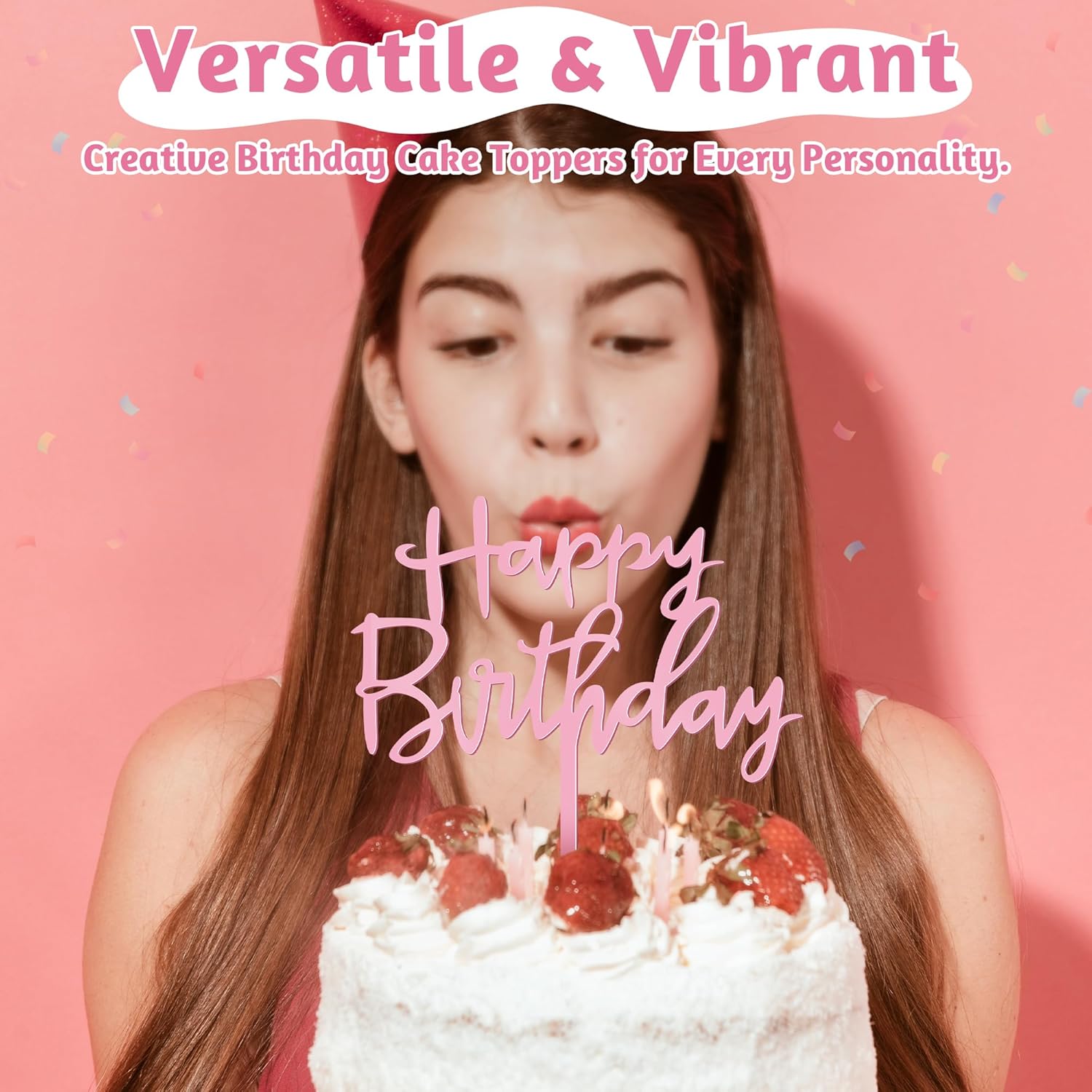 - Versatile Use: This pink cake decorations can be used to decorate cheesecakes, ice cream towers, or even wedding dessert tables. The eye-catching βHappy Birthdayβ lettering can also be used as a chic photo backdrop.