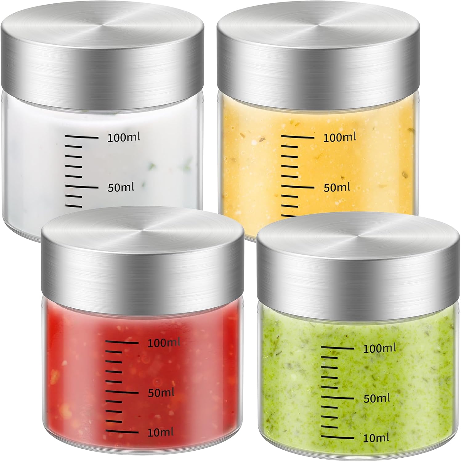 - 【4oz High-quality Borosilicate Glass Bottles】These glass jars are made of borosilicate glass, which is more transparent, thicker, and of better quality than ordinary glass. This thick and transparent glass bottle can withstand sudden changes in temperature difference ranging from -4°F to 300°F without breaking. Note: These glass bottles can be placed in the refrigerator for refrigeration and preservation, but it is not recommended to put them in the freezer compartment for freezing