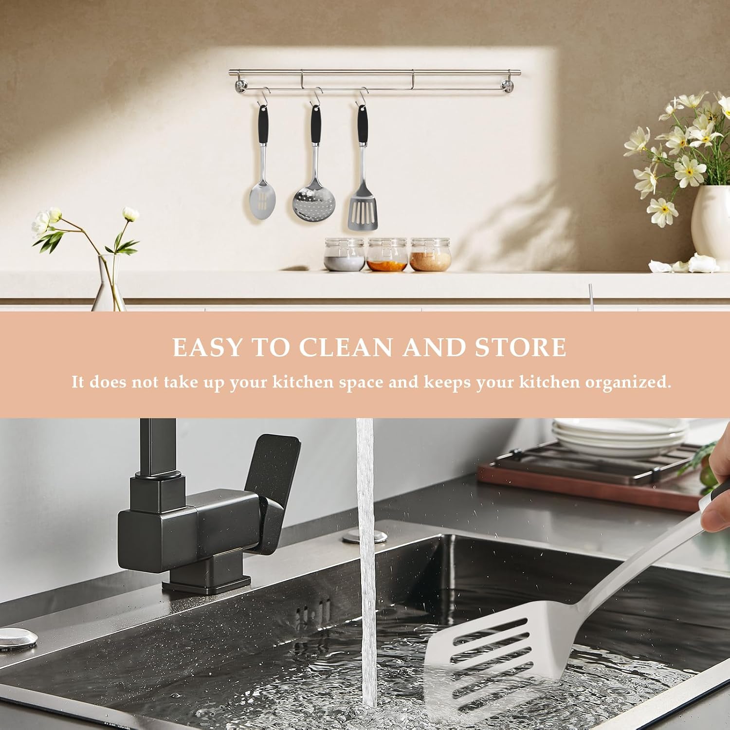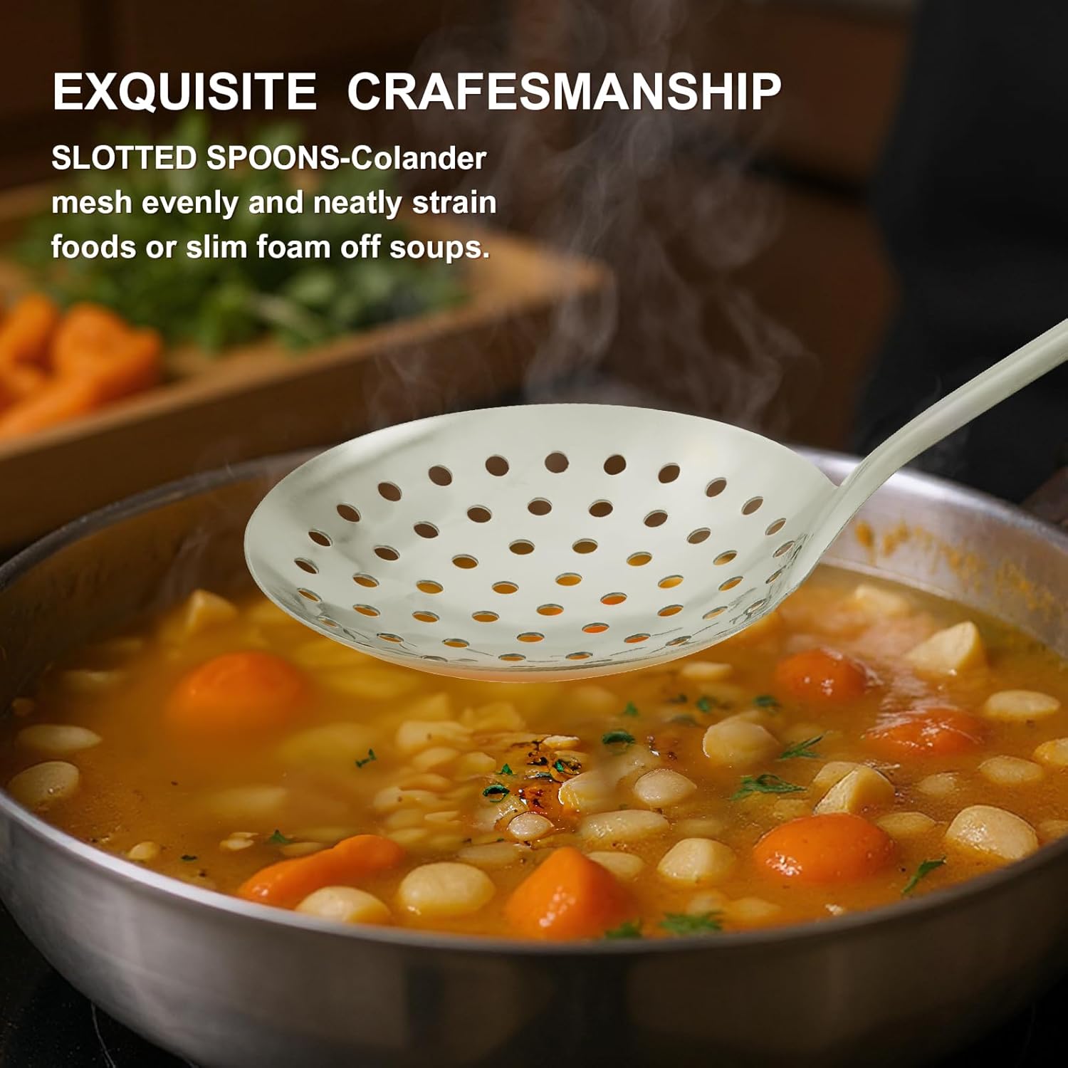 - Dishwasher Safe and Easy to Store: Easy to clean, the beautiful stainless steel slotted spatula can be washed by hand or in the dishwasher. Also, there is a built-in hanging hole on top of the handle for easy storage.