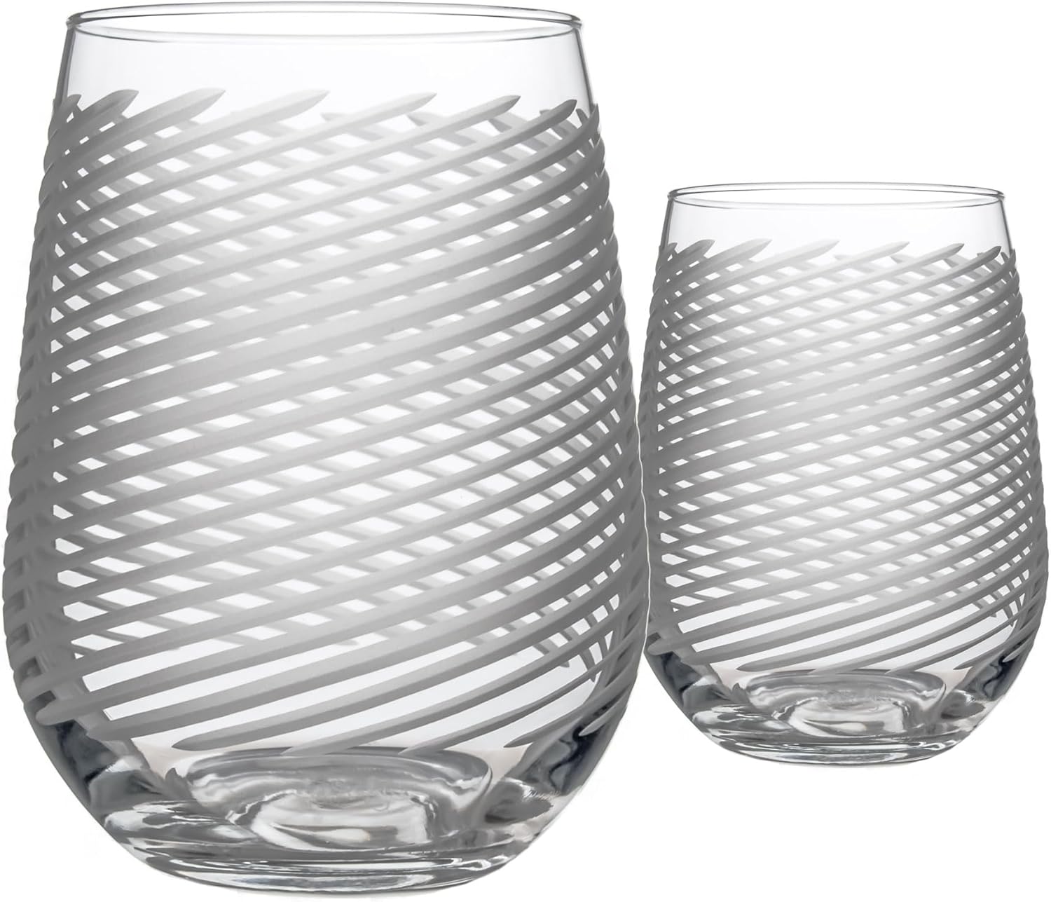 Rolf Glass Cyclone Stemless Wine Tumbler | 17 Ounce Set of 2 | Proudly Made in the USA | Large Engraved Wine Glasses | Lead-Free Glass
