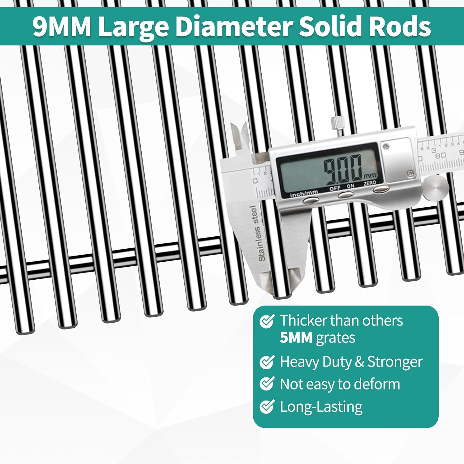 - 【9MM Diameter Solid Rods】Thickness of Meyafiny cooking grate is 9MM, more thicker and stronger than other 5mm/ 7mm grill grates. Our barbecue cooking grids feature SUS304 thicken solid rod bars, which are not easy to deform and more durable for long time using.