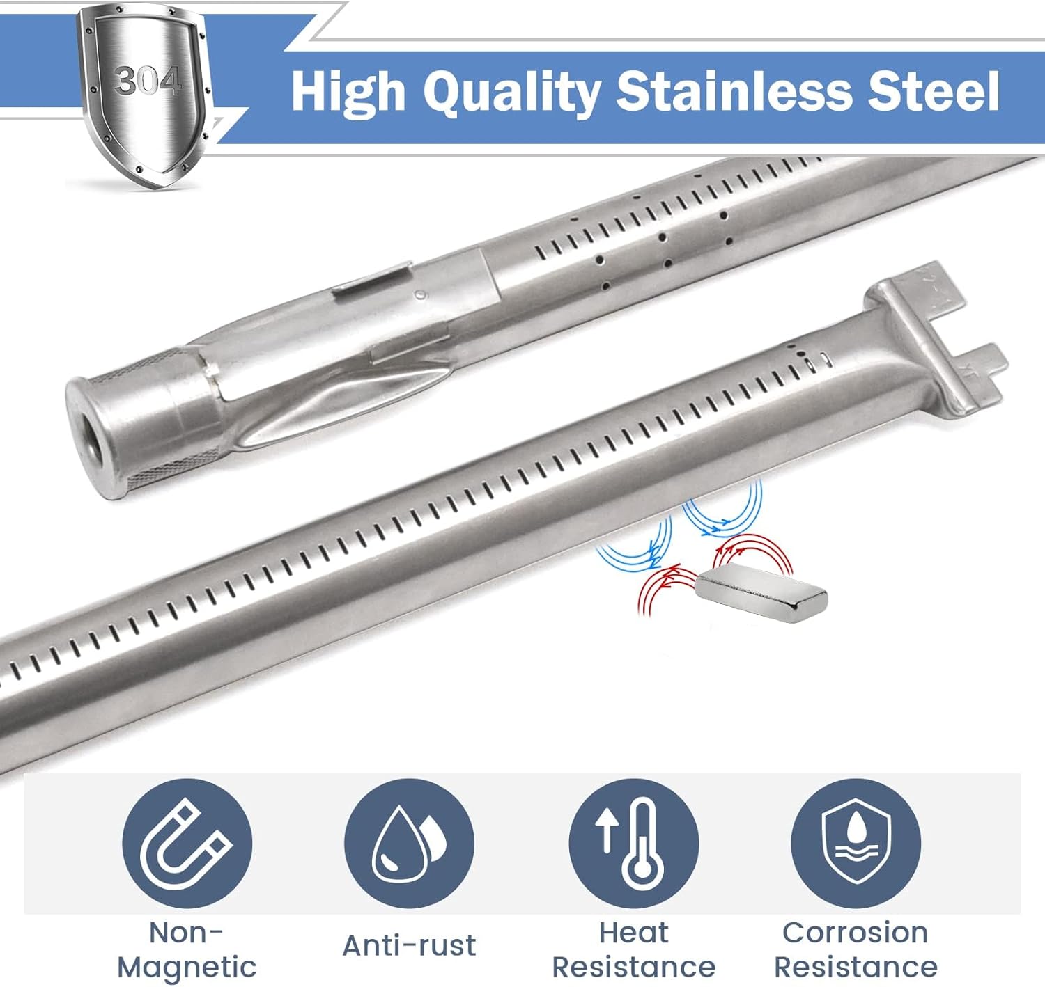 - 【Product Specification】►Flavorizer Bars Dimension: L 15.3" x W 3.5" x H 2.5. Material: Stainless Steel. ►7637 Cooking Grates Dimensions 17.5" x 10.2" for Each, 17.5" x 20.4" for Tatol, Material: Heavy Duty Cast Iron; ►69785 Burner Tube Dimension: Main Burners: 18" L, Crossover Tube: 10 1/2" L, Diameter: 1". Material: Heavy Duty SUS304 Stainless Steel, Non-magnetic.
