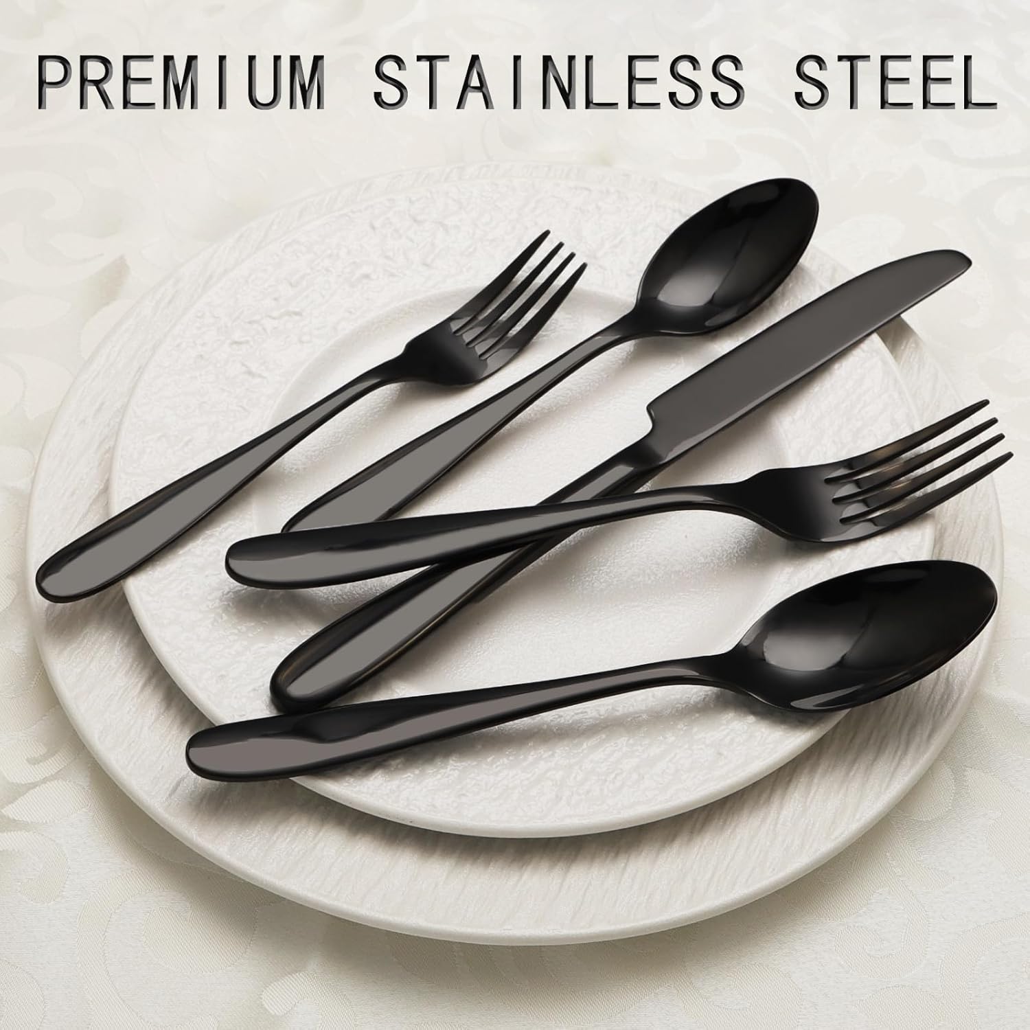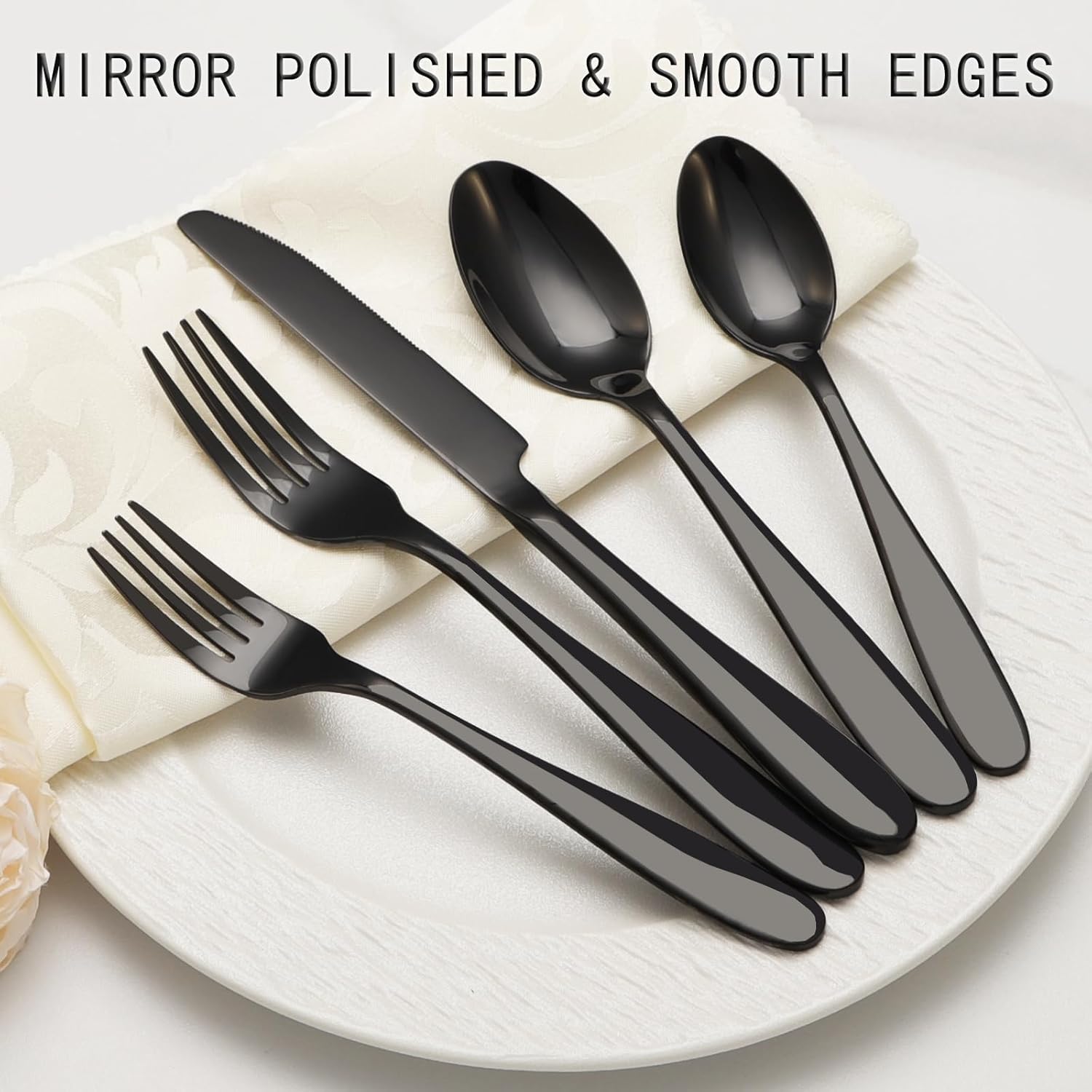 40-Piece Black Silverware Set, Flatware Set for 8, Food-Grade Stainless Steel Tableware Cutlery Set, Mirror Finished Utensil Sets for Home Restaurant, Forks Spoons and Knives Set, Dishwasher Safe
