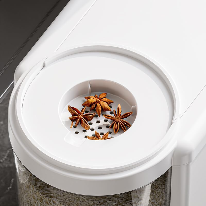 - Large capacity: This rice storage container can hold 22-25 pounds (11.5 kilograms) of rice, allowing you to store more rice for a long time and maintain hygiene. It can not only store rice, but also other grains. Due to differences in particle size and density, the weight of grains stored in the same volume may vary. Rice dispensers can generally be used for millet and soybeans, but cannot be used for flour, large dog food, and other foods.