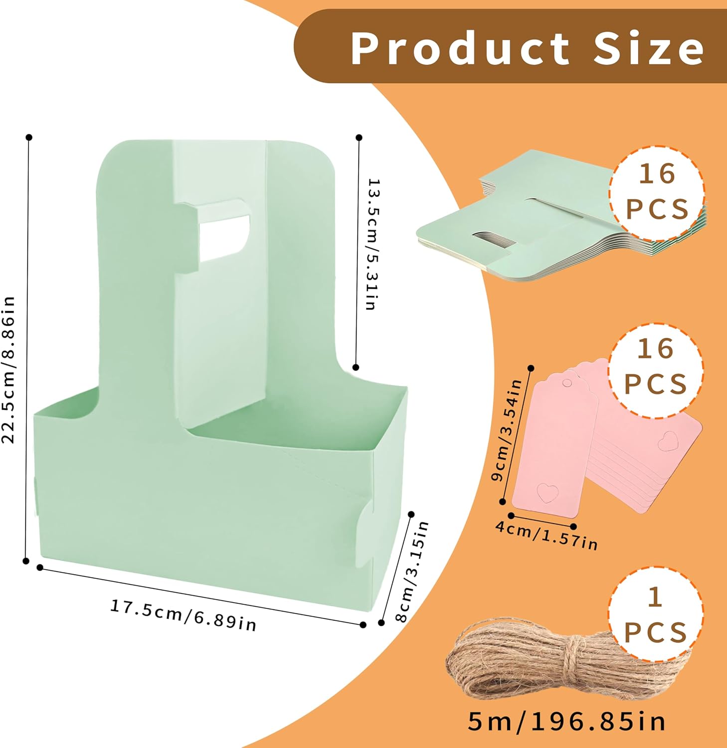 - Sturdy Coffee Cup Support: The coffee carrier is engineered to securely hold 2 coffee cups. The unfolded paper cup holder size is 17.5*9*22.5cm. Drink carrier reinforced structure and snug-fitting design prevent spills and ensure safe transport. The disposable cup holder's sturdy build provides a perfect space for arranging small floral bouquets.