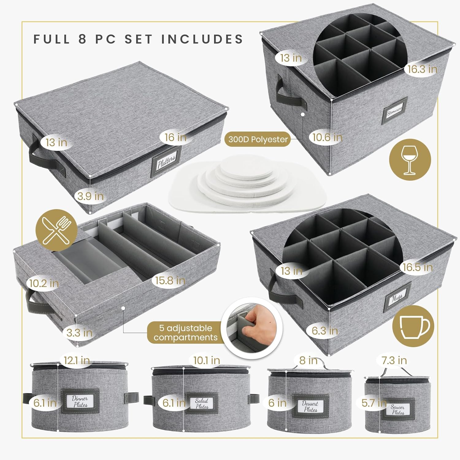 - Comprehensive Light Gray Dessert Plate Storage: Homelux Theory's China Storage Containers & storage bins with lids are a durable solution to ensure that your delicate dishware for everyone's favorite dessert stands the test of time. In this 2-piece set of storage for china dinnerware sets with dimensions 8"Dx6"H, each dessert dish storage have 12 felt pads & 2 sturdy handles, providing protection for your dinnerware. Preserve the quality of your chinaware with this china storage solution.