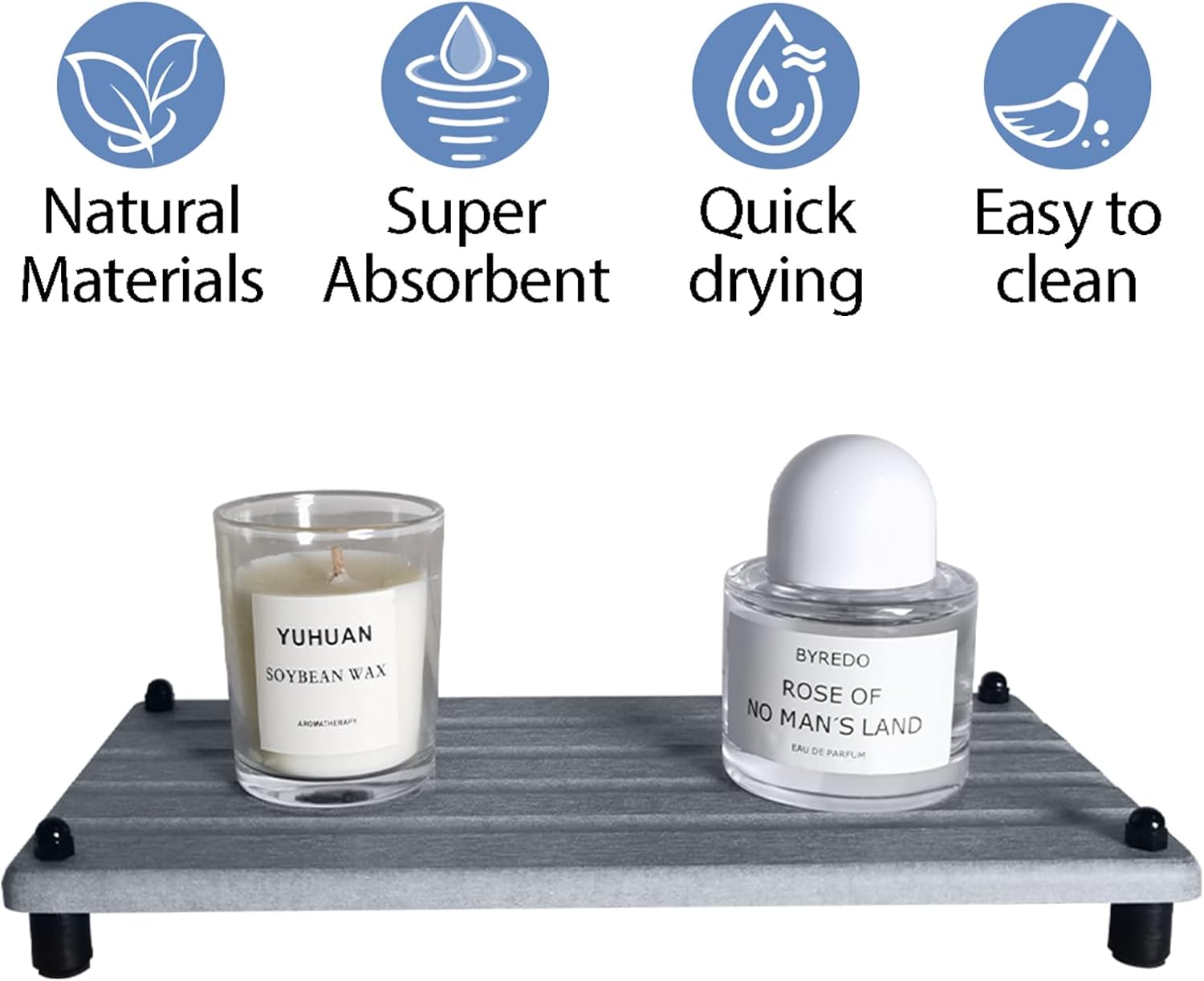 - 【Multifunctional】This versatile diatomite tray works perfectly for bathroom sinks and kitchen counters. Ideal as a drying base for soap, cups, hand soap bottles and cosmetics. Keeps surfaces dry and tidy for a cleaner, more organized space.