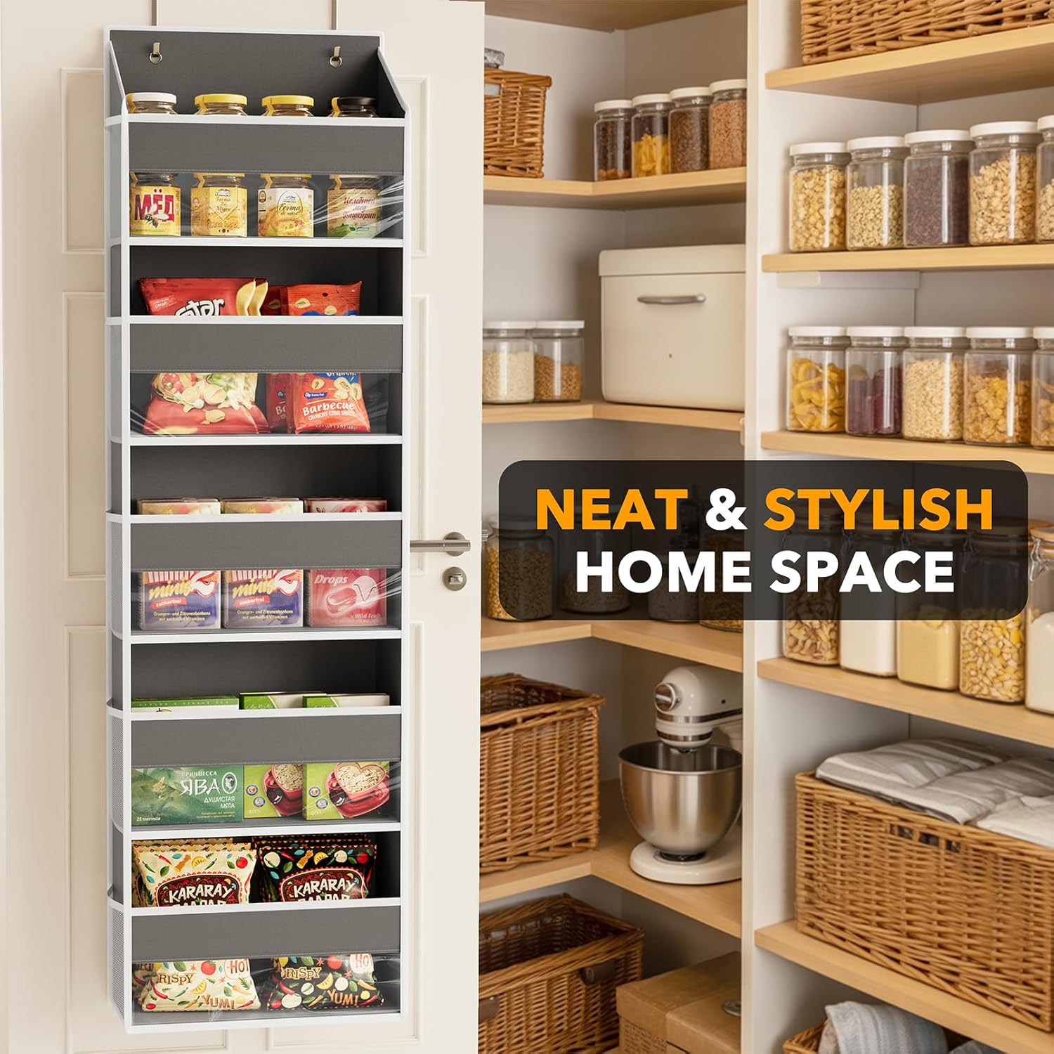 - STURDY CONSTRUCTION - Extra cardboard panels provide sturdy support to this over the door organizer made of the non-woven fabric, preventing deformation even with long-term use; No flimsy, collapsing pockets!