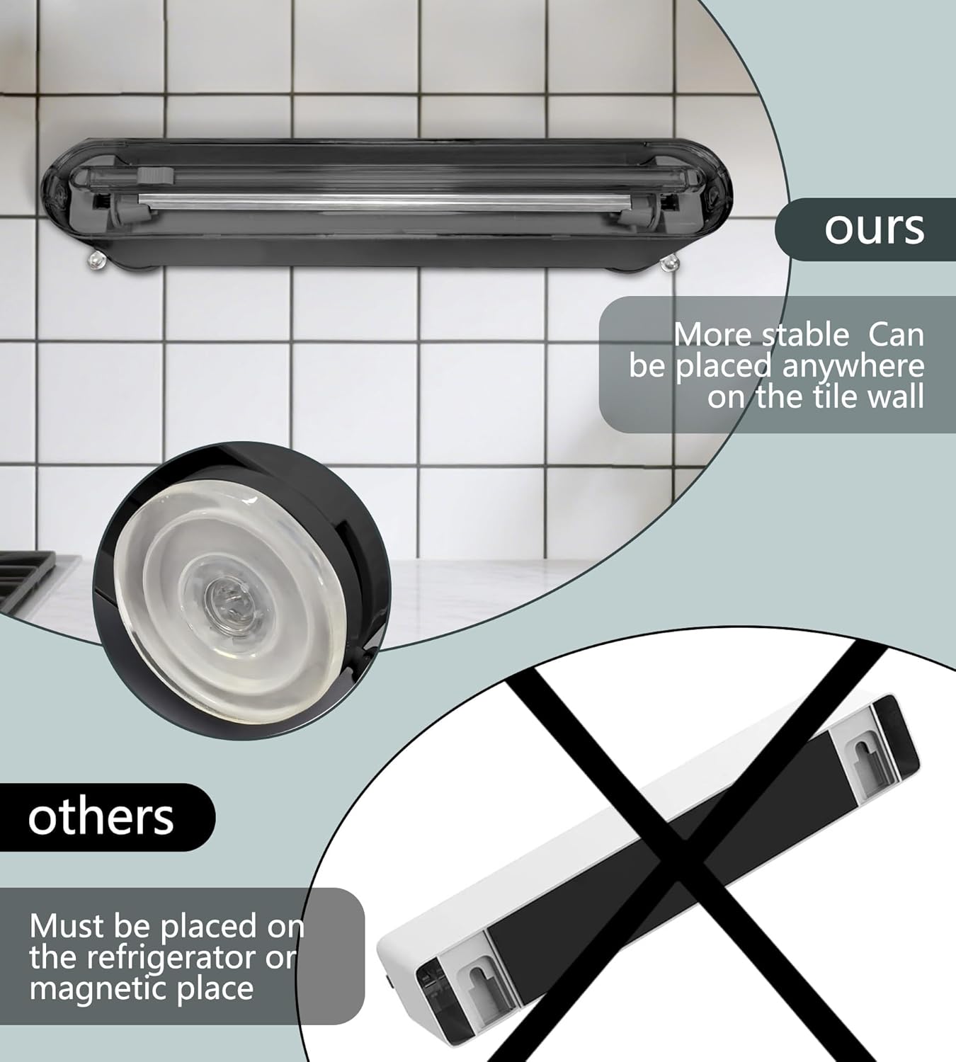 - 【Space-Saving & Kitchen-Friendly】Say goodbye to drawer clutter! Mount this dispenser on tile walls near your stove, prep area, or sink to keep wraps handy and organized.