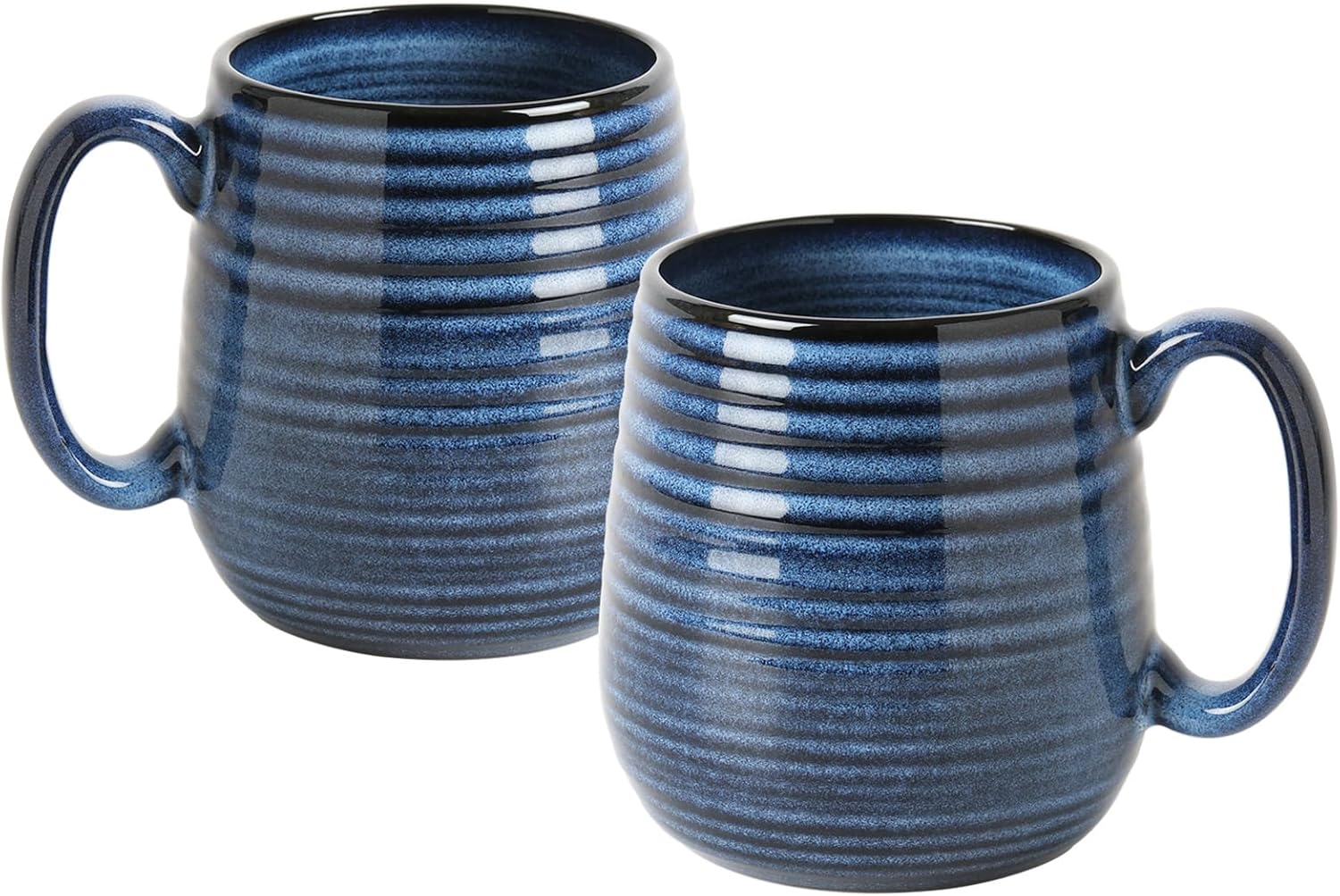 20 oz Large Ceramic Coffee Mugs set of 2, Coffee Mugs for Women and Men, Big Tea Cups, Large Handle Mug for Office and Home, Microwave and Diahwasher Safe (Blue with Stripes, 2PCS)
