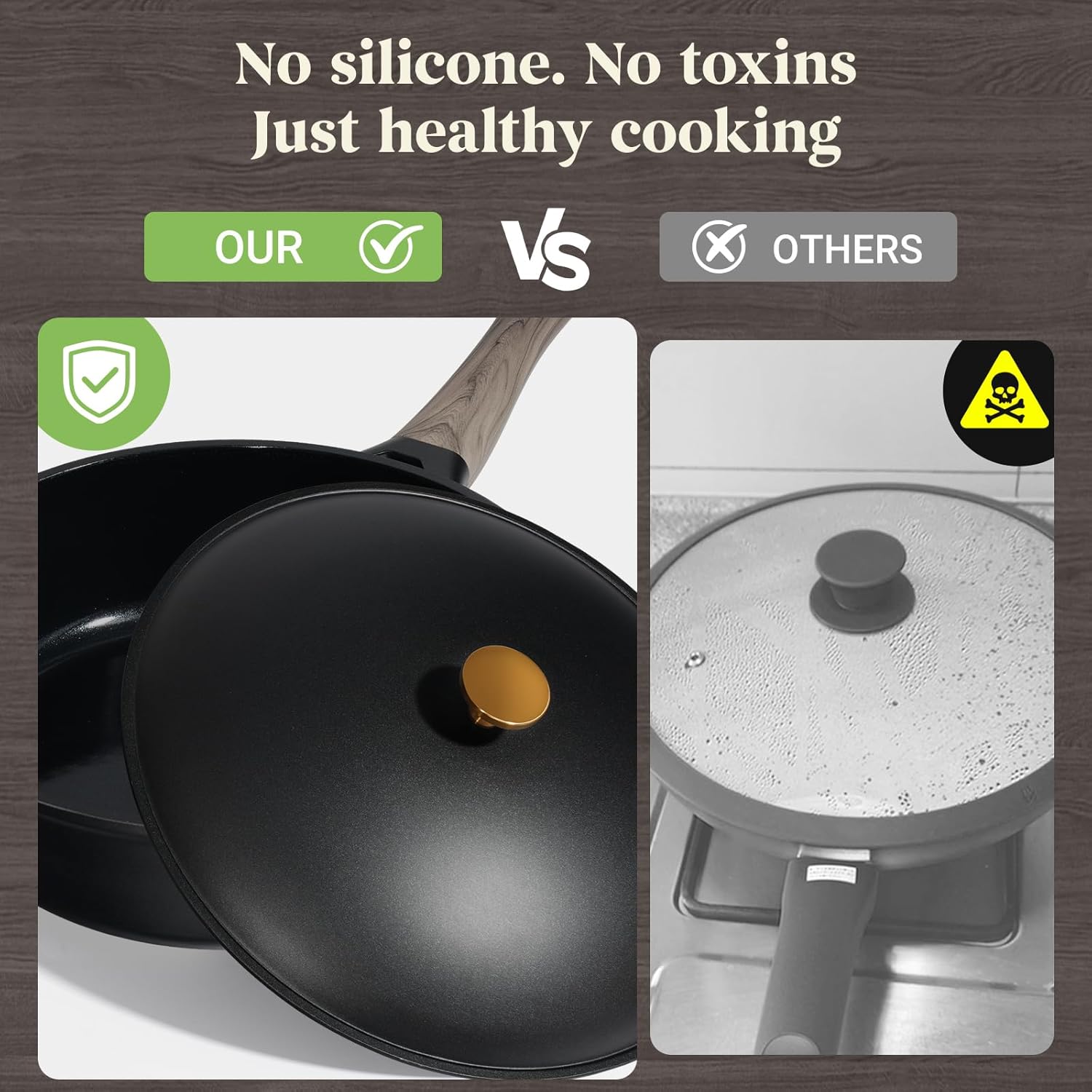 - 【Ti-Ceramic Coating Ultra Non-Stick & Non-Toxic】Engineered with a next-generation ceramic coating enhanced by titanium powder, this non toxic cookware set offers long-lasting nonstick performance and superior scratch resistance. 100% free from PFAS and other harmful chemicals—cook healthy with confidence.