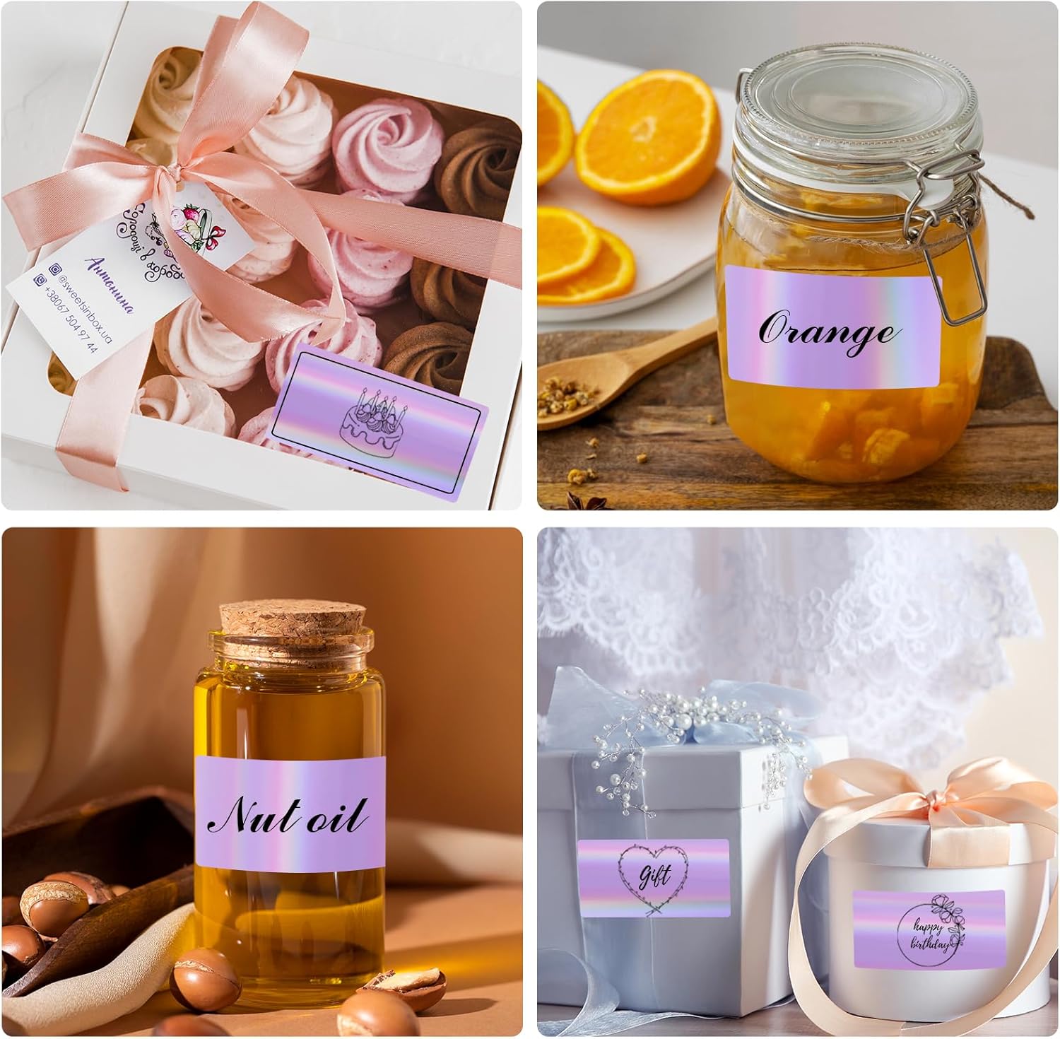 - Wide Applications in Life and Business: Make your brand and products stand out with captivating hologram labels! and they are more than just ordinary stickers. The rich, vivid, and lively colors will enhance your packaging and attract everyone's interest. The stickers are widely applied on gift wraps, greeting card stickers, thank you card envelopes, flower bouquets, packaging bags, candy bags, wedding favors, scented bath soaps, wine bottles, and jars, etc