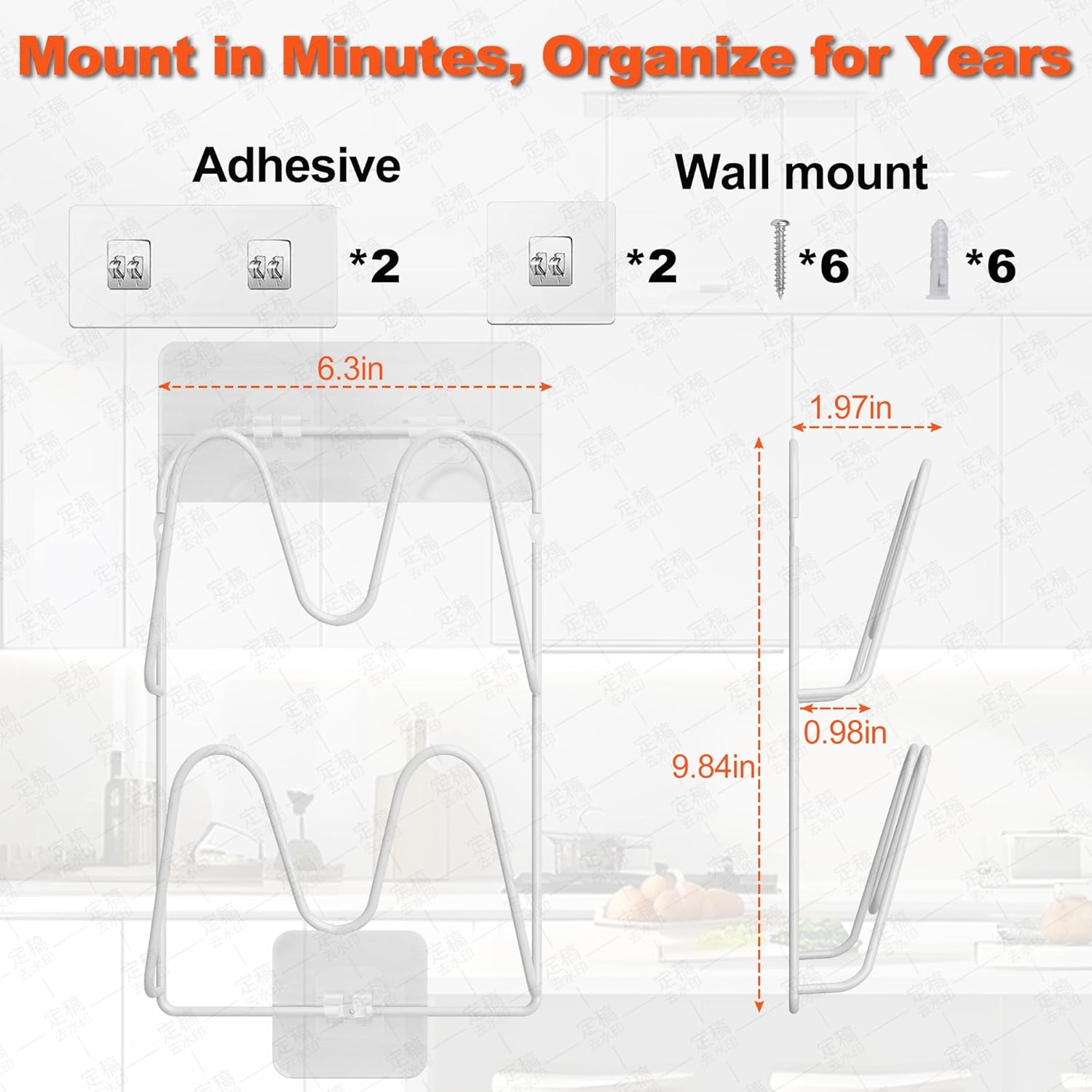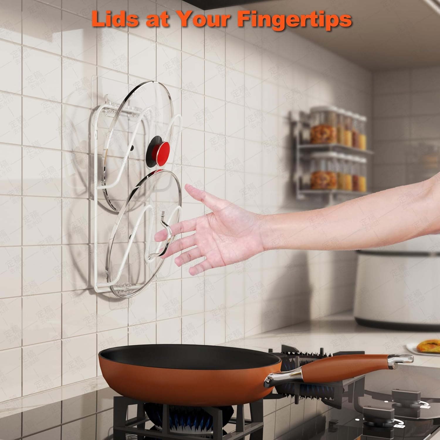 - LOSSLESS INSTALLATION: The 5.9-inch adhesive for smooth cabinets, or screw for textured walls/tiles. Install a wall mounted pot lid holders, and reheat leftovers faster than in the microwave! Great for use as a pots lid organizers inside cabinet