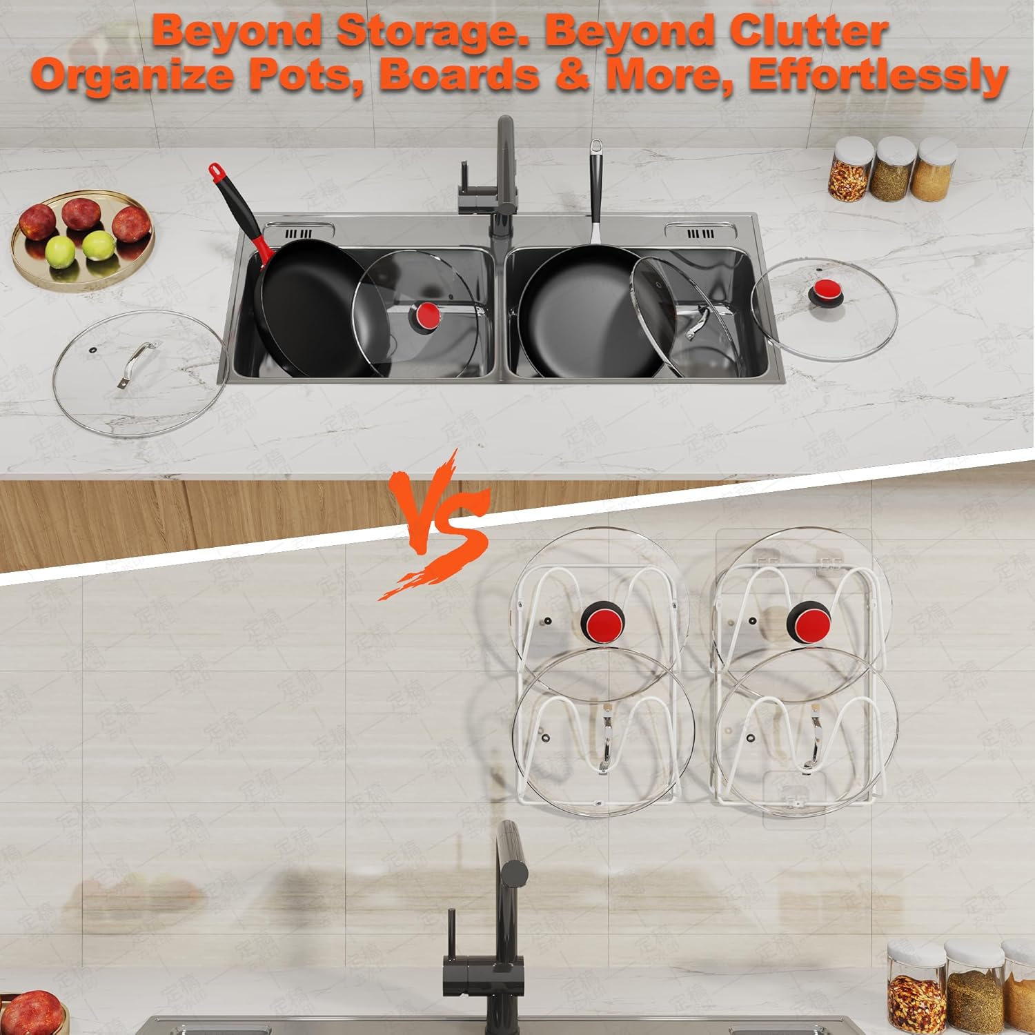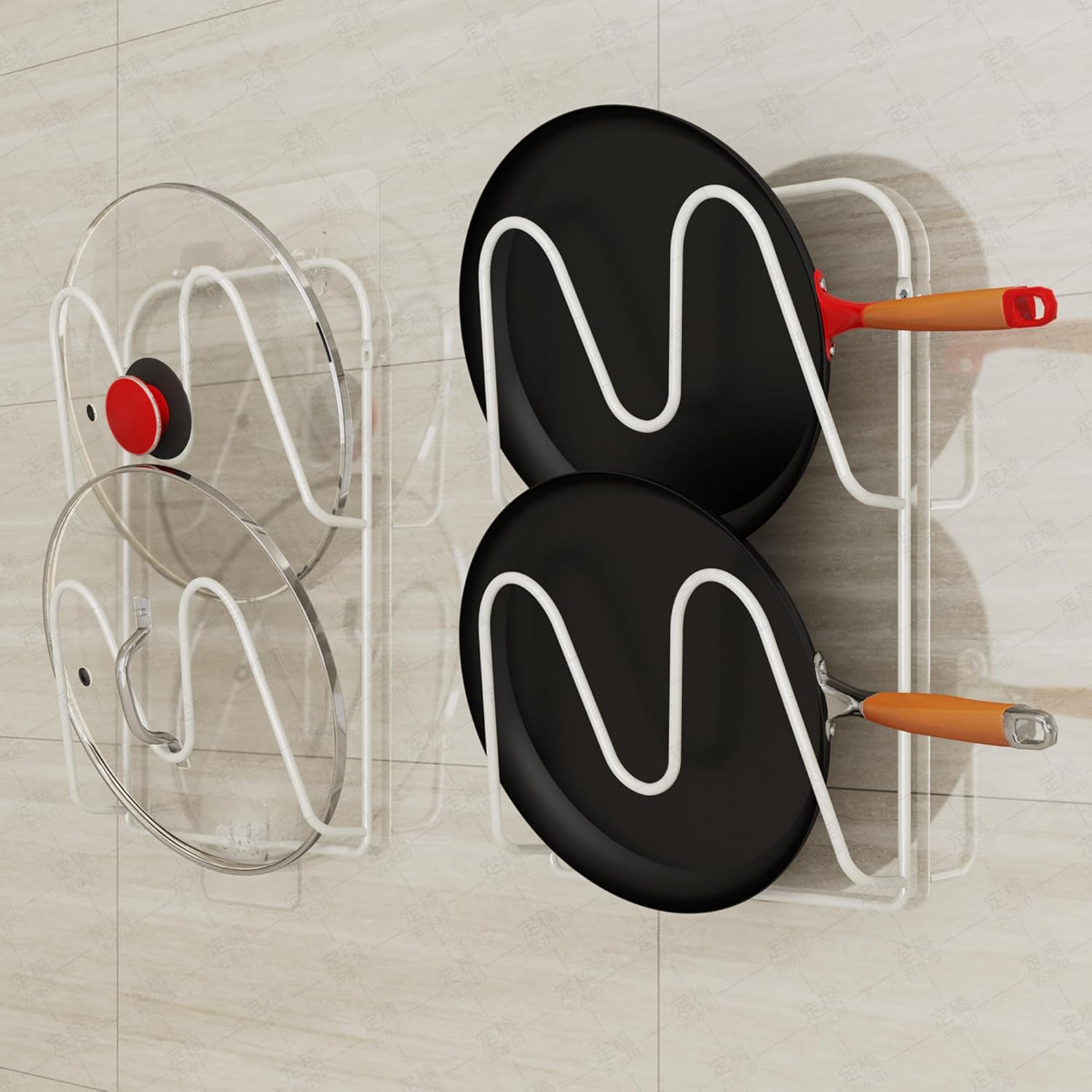 2 Pack Pot-Lid-Holder, 4-Tier Pot-Lid-Organizer for Cabinet Door/Wall, No Drilling Adhesive Wall/Door Mounted Rustproof Pot-Lid-Rackr for Kitchen Organizers