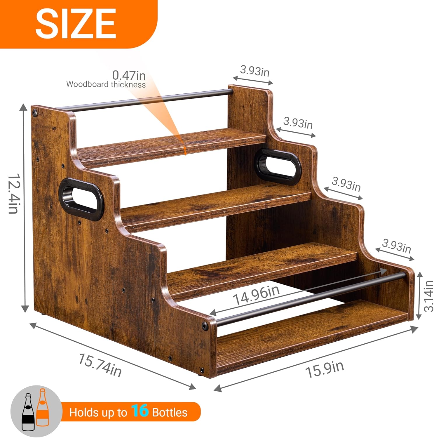 - THE ULTIMATE 16-BOTTLE DISPLAY: Go big with our 4-tier bar shelf! It has an impressive capacity to hold up to 16 standard bottles, transforming your collection into a commanding centerpiece. The stadium-style tiers provide a perfect, unobstructed view of every single bottle.