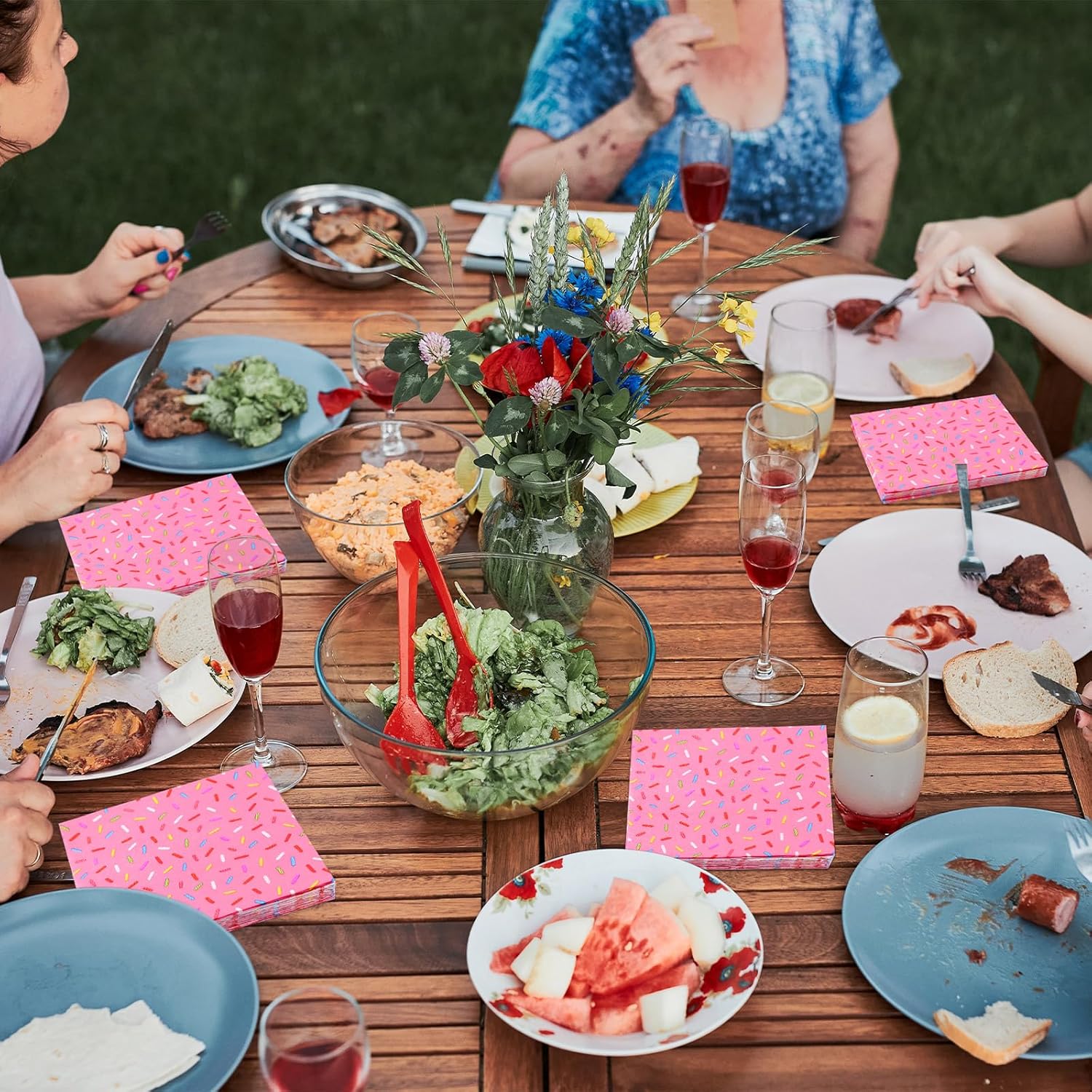 100 Pcs Sprinkles Napkins 2 Ply Disposable Paper Napkins for Baby Shower Birthday Party Theme Table Decor Supplies (Pink,Donut)
