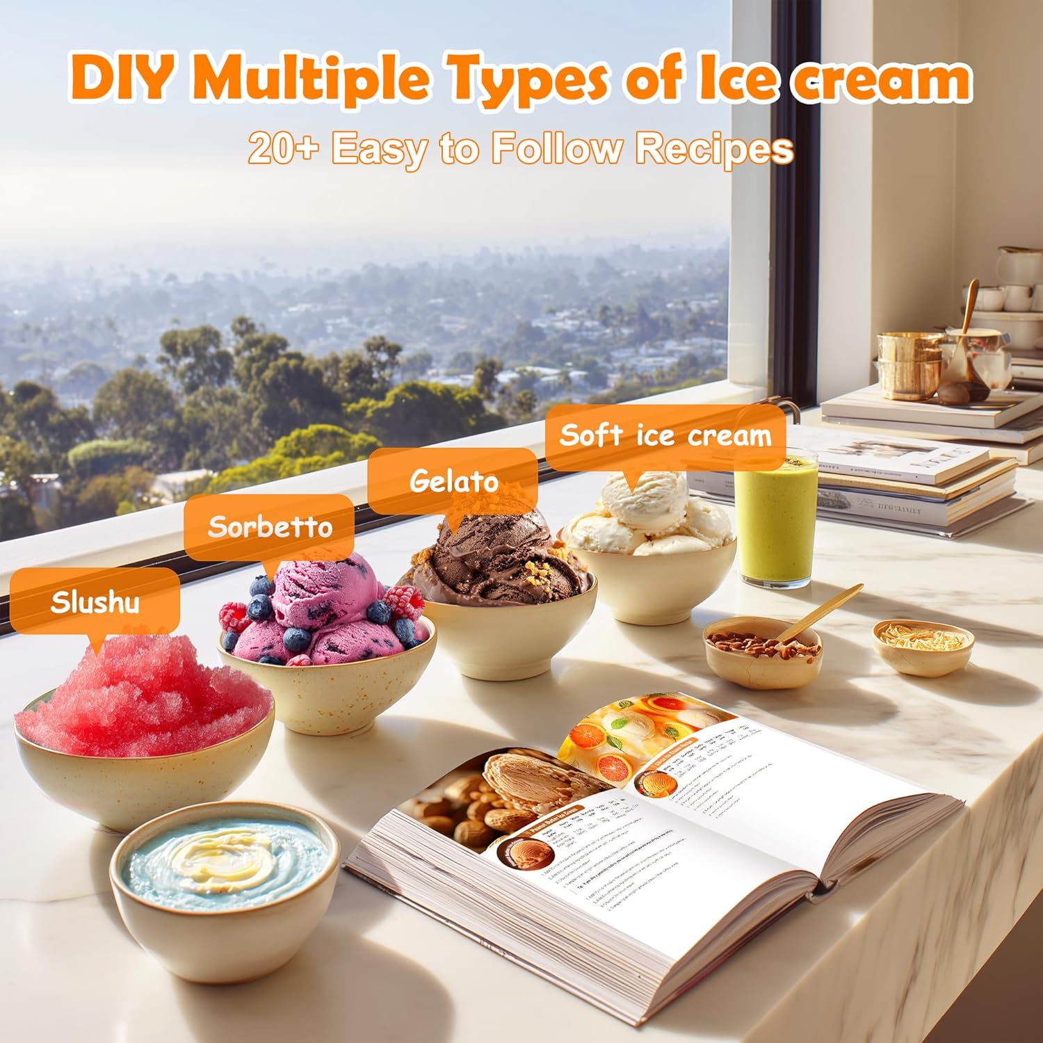- [20+ Easy to Follow Recipes]Enjoy professional-quality soft serve at home with our included recipe book,featuring crowd pleasers like vanilla bean, chocolate fudge, and strawberry swirl. Each recipe is tested to deliver the perfect smooth, velvety texture, with options for dairy-free, sugar-free, or fruity sorbet variations
