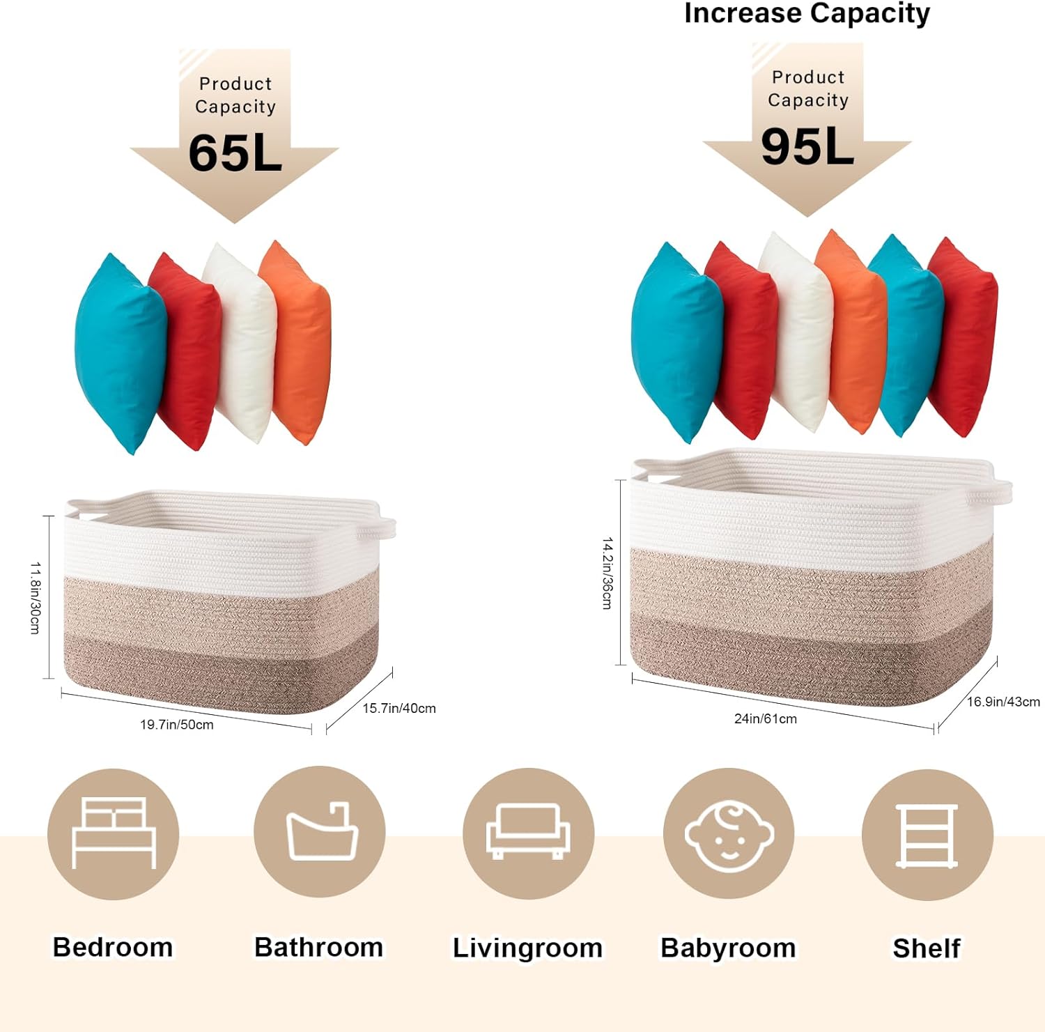 65L Large Storage Basket, Cotton Rope Woven Blanket Basket, Toy Storage for Baby Room, Living Room, Gradient Yellow