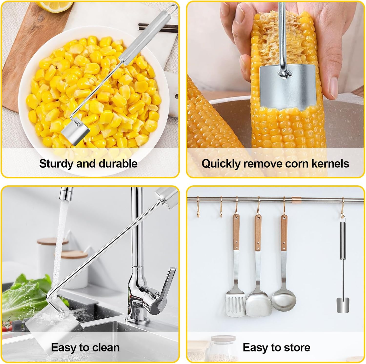 - Effortless Operation: Save time and effort in the kitchen with our Corn Peeler Set. Simply press the tool against the corn cob and push down to release multiple rows of kernels at once. It's easy to use, even for beginners, and helps you prepare corn quickly for salads, soups, pizzas, and more.