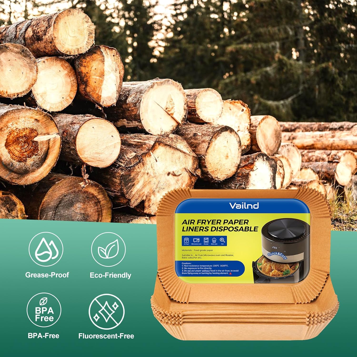 - Healthy Materials: Rectangle air fryer paper liners are made of unbleached parchment with double-sided silicone oil coating, no fluorescent, BPA-free. These baking paper are no affection to the taste of food and the hot air circulation of air frying
