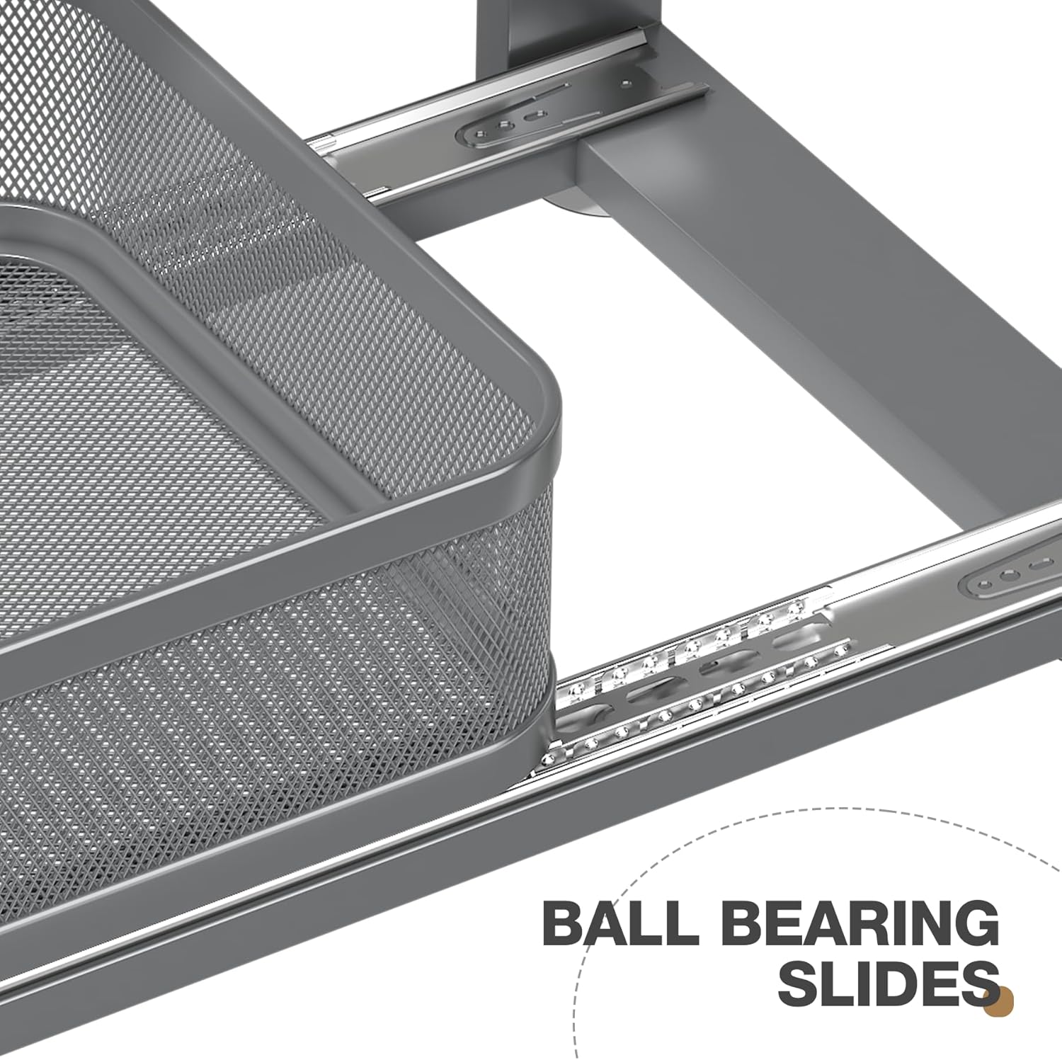 2 Pack 21IN-Depth Under Sink Organizer With Next-Gen Ball-Bearing Slides,2-Tier Precision Mesh Pull Out Cabinet Storage for Bathroom&Kitchen,Height Adjustable Drawers Shelf,Anti-rust-Grey