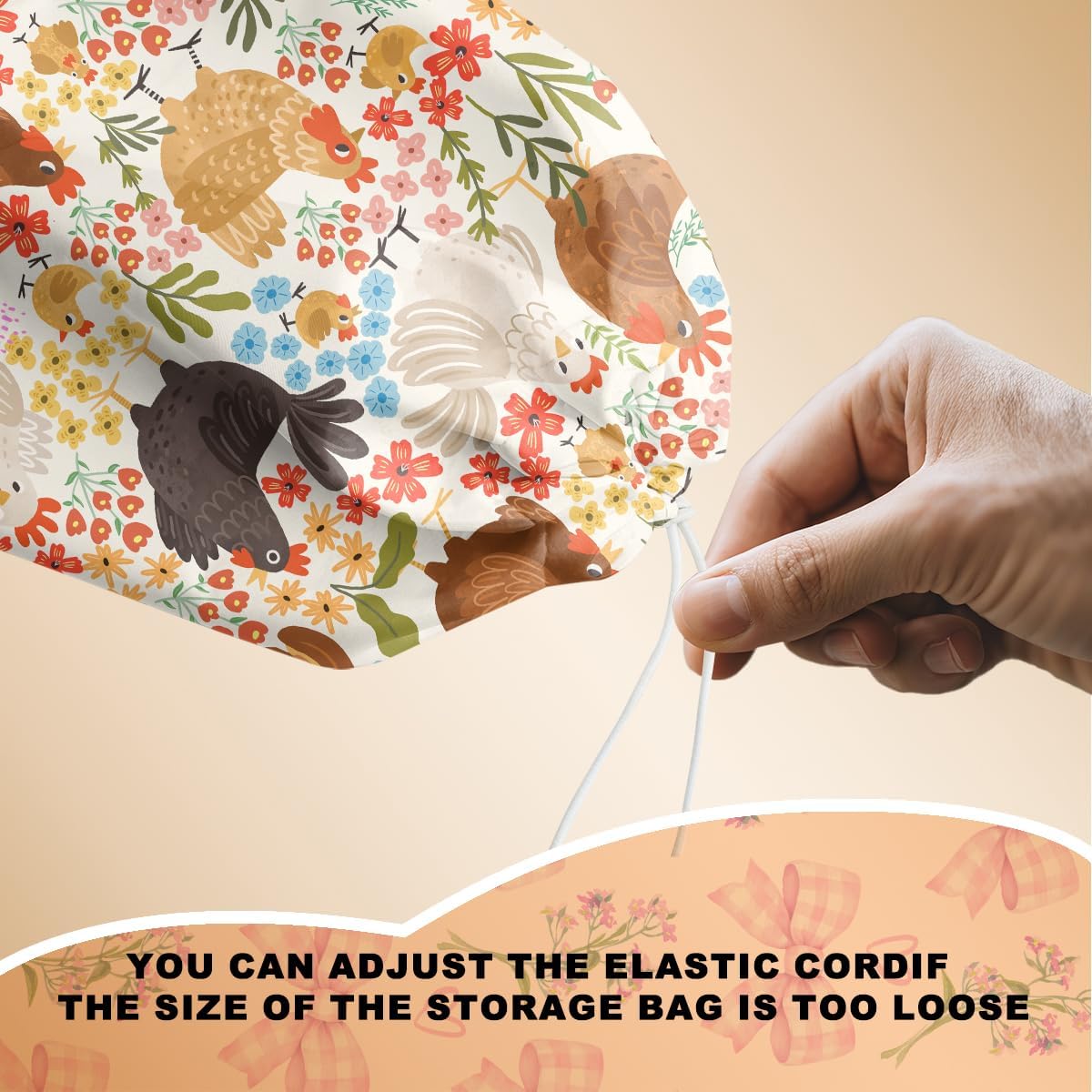 2 Pcs Chicken Plastic Bag Holder, Funny Chickens Grocery Bag Holder for Plastic Bags, Pull Rope Free Adjustment, Floral Grocery Bags Storage Dispenser for Home Kitchen, Chicken Gifts for Women
