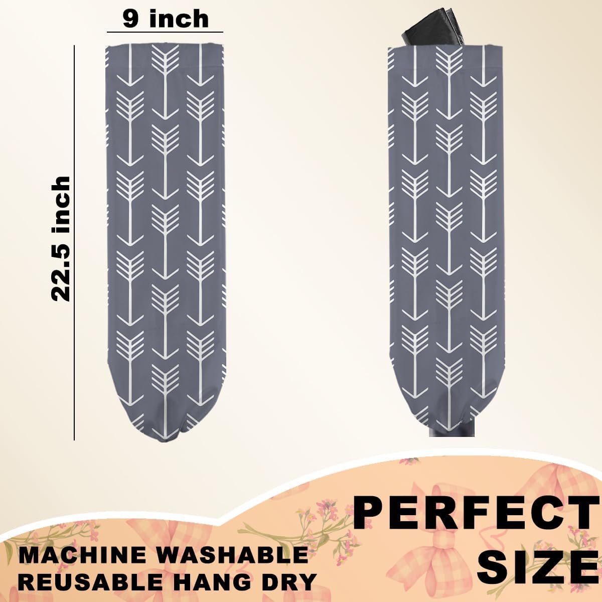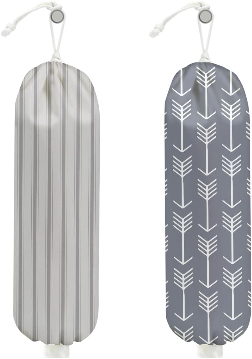 2Pcs Minimalism Stripe Plastic Bag Holder, Wall Mount Grocery Bag Holder for Plastic Bags, Abstract Art Arrow Reusable Organizer Grocery Bags with Drawstring, Housewarming Gifts for Women Mom