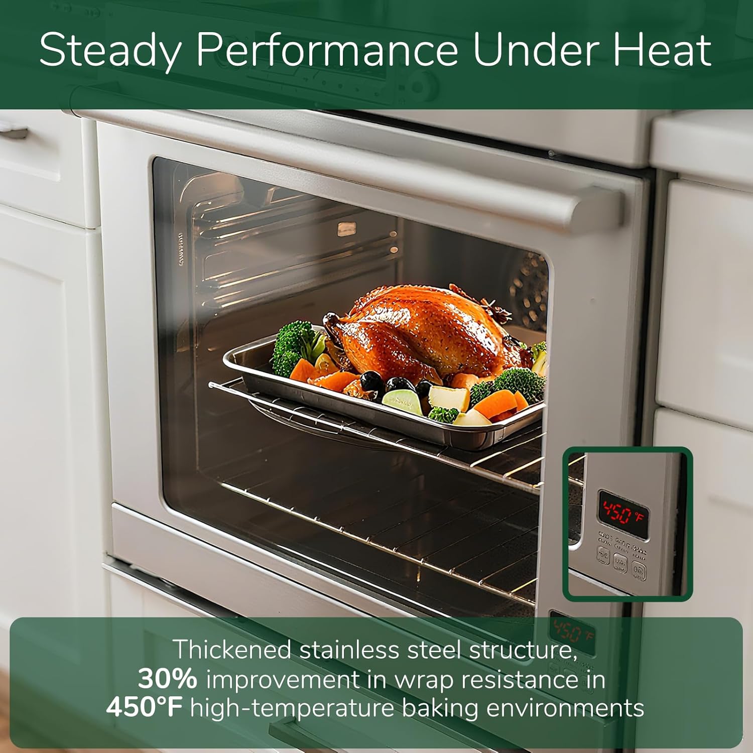 - 𝗩𝗲𝗿𝘀𝗮𝘁𝗶𝗹𝗲 & 𝗘𝘃𝗲𝗻 𝗕𝗮𝗸𝗶𝗻𝗴 🍀 The flat bottom design of the baking pan improves heat conduction efficiency, making it suitable for baking cookies, bread, grilled meat, turkey, bacon, pastries, and fruit pies, helping you easily prepare delicious home-cooked meals.