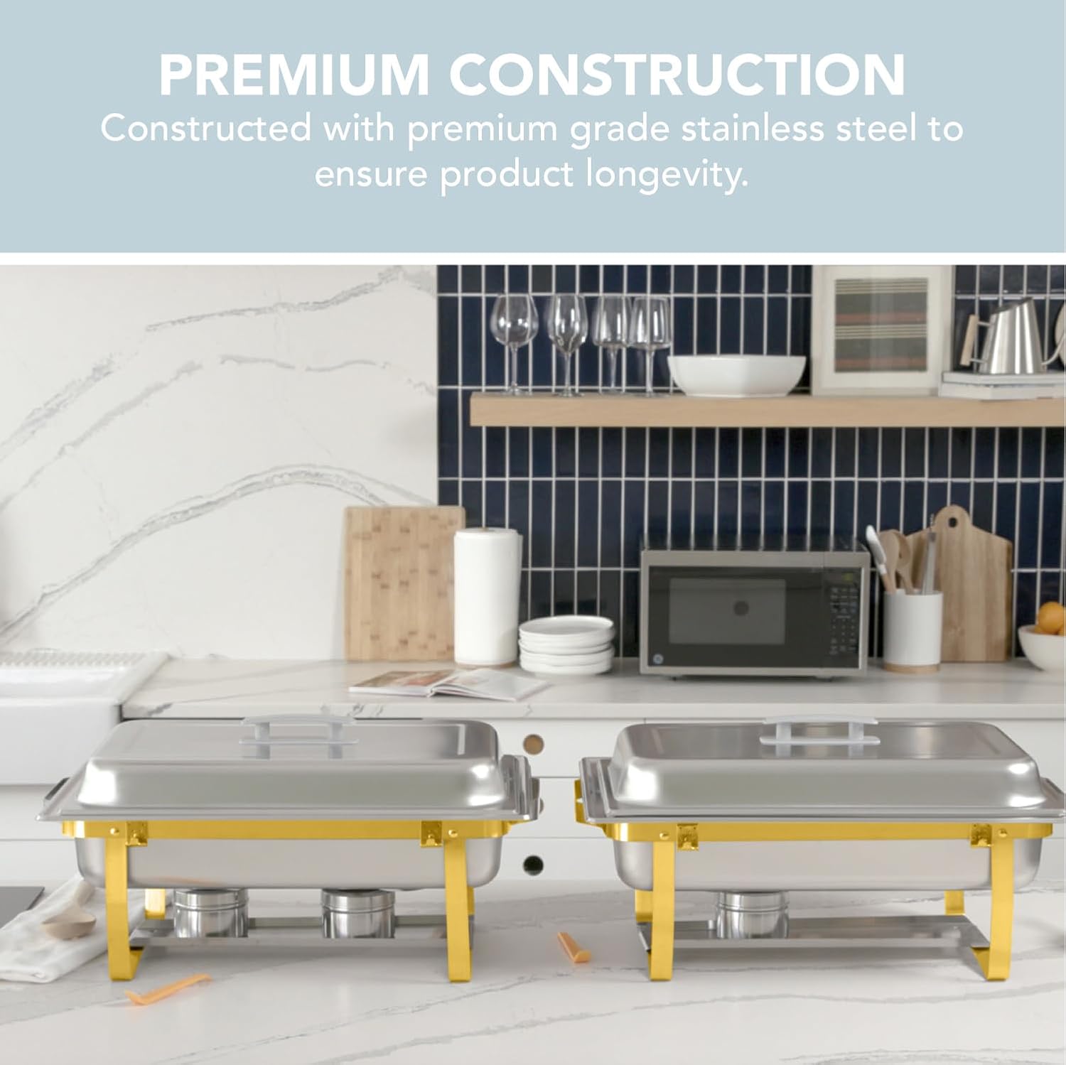 - COVENIENT STRUCTURE - Each chafing dish comes with 2 fuel holders, frame, A full-size pan tray, and lid. The chafing dish also has handles to ensure that the product can be moved with ease.