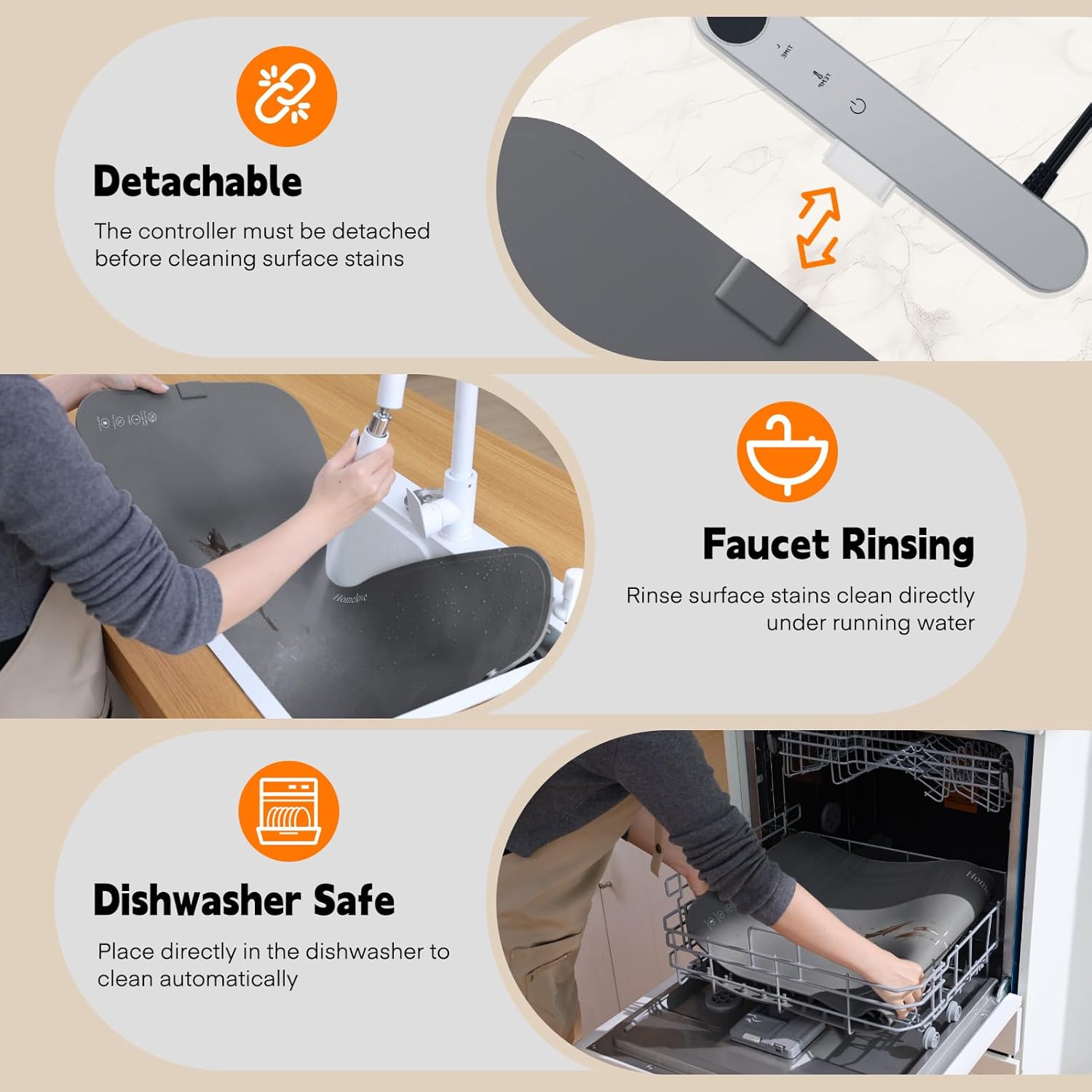 - Washable and Dishwasher-friendly: The control board and heating board of our food warming mat are detachable. Simply remove the control board, and the heating board is waterproof and washable, you can put it in the dishwasher for cleaning, spend more time enjoying your meals and less time cleaning up.
