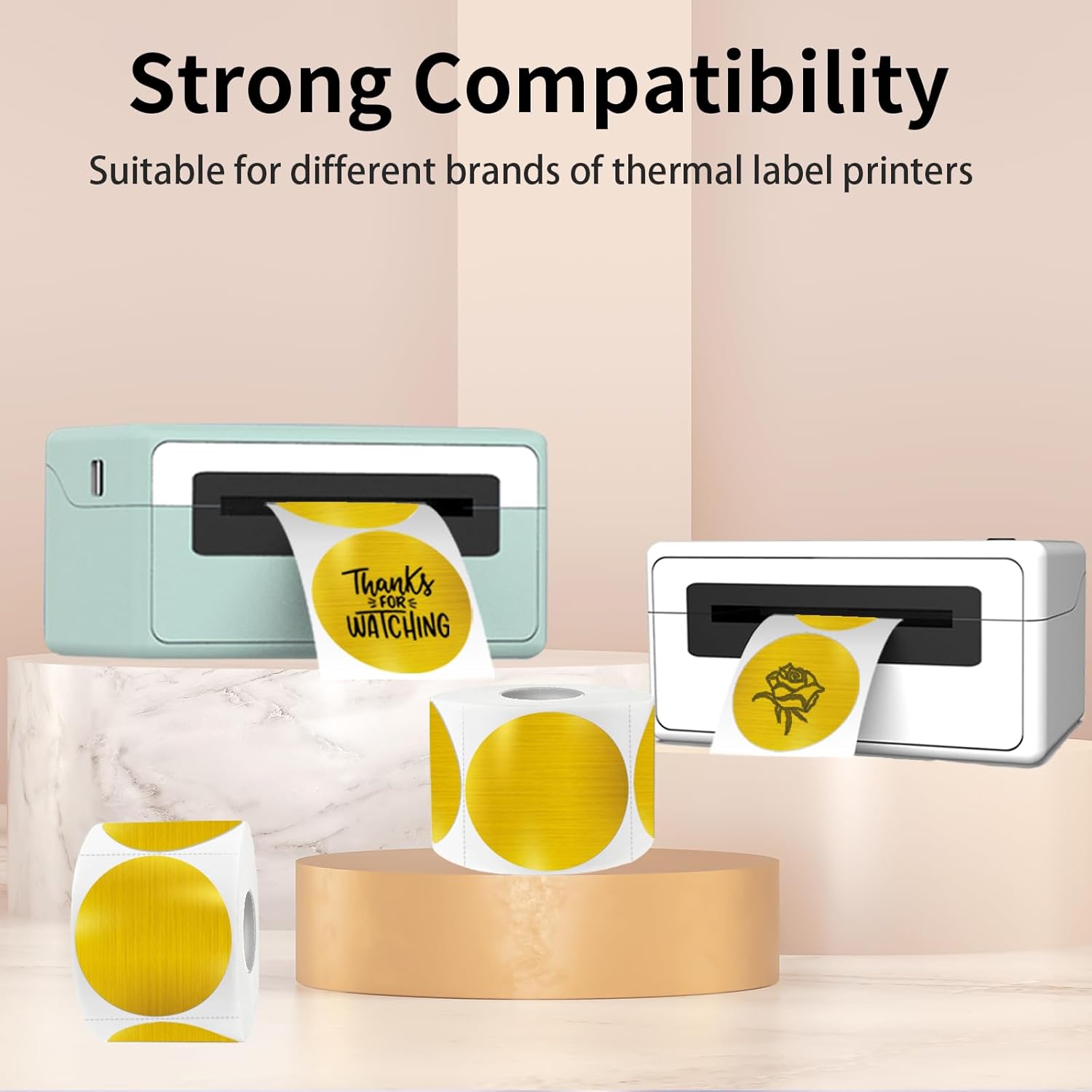 2''Holographic Thermal Label,Gold Round Self-Adhesive Direct Thermal Label,Thermal Stickers for DIY Logo Design,Name Tag (300/Roll