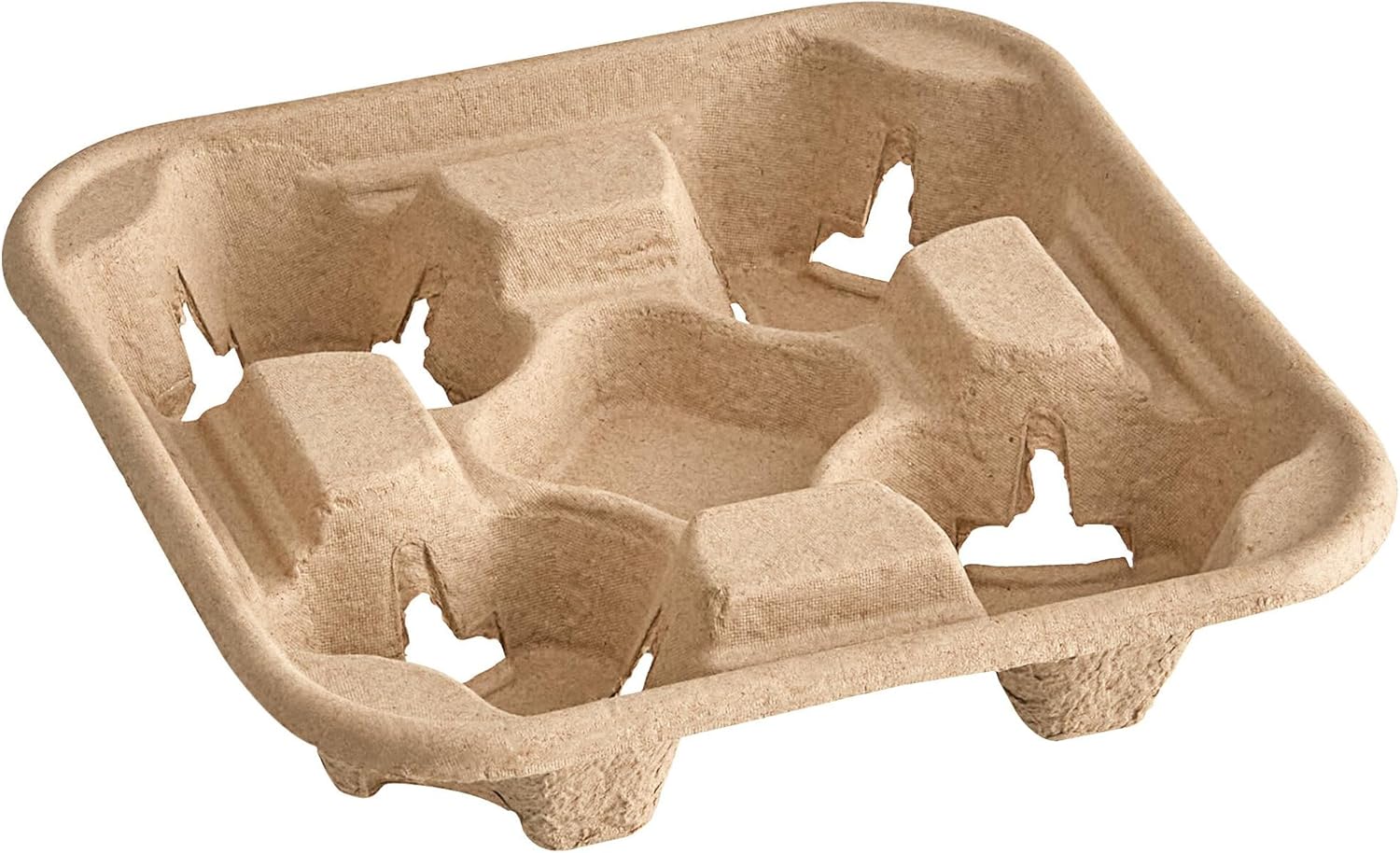 4 Cup 8 oz. - 32 oz. Drink Carriers & Paper Cup Holder (25 Pack) For Disposable Cups, Delivery Carrier- To Go - Coffee Drinks or Iced Drink Molded Fiber [25 Case Pack]