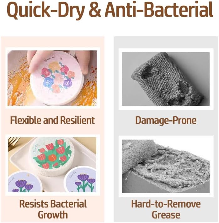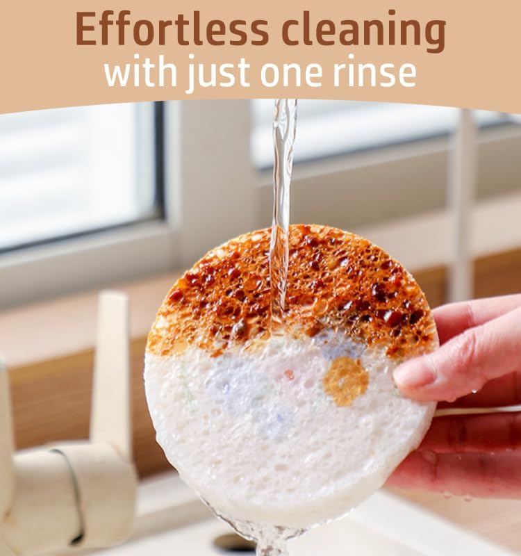 Flower-Shaped Wood Pulp Sponge Scrubber, sponges Kitchen– Dual-Sided Natural Dish Sponge,sponges for Dishes, Eco-Friendly, Quick-Drying, Gentle on Non-Stick Pans (9.3×1.8cm) (12pcs)