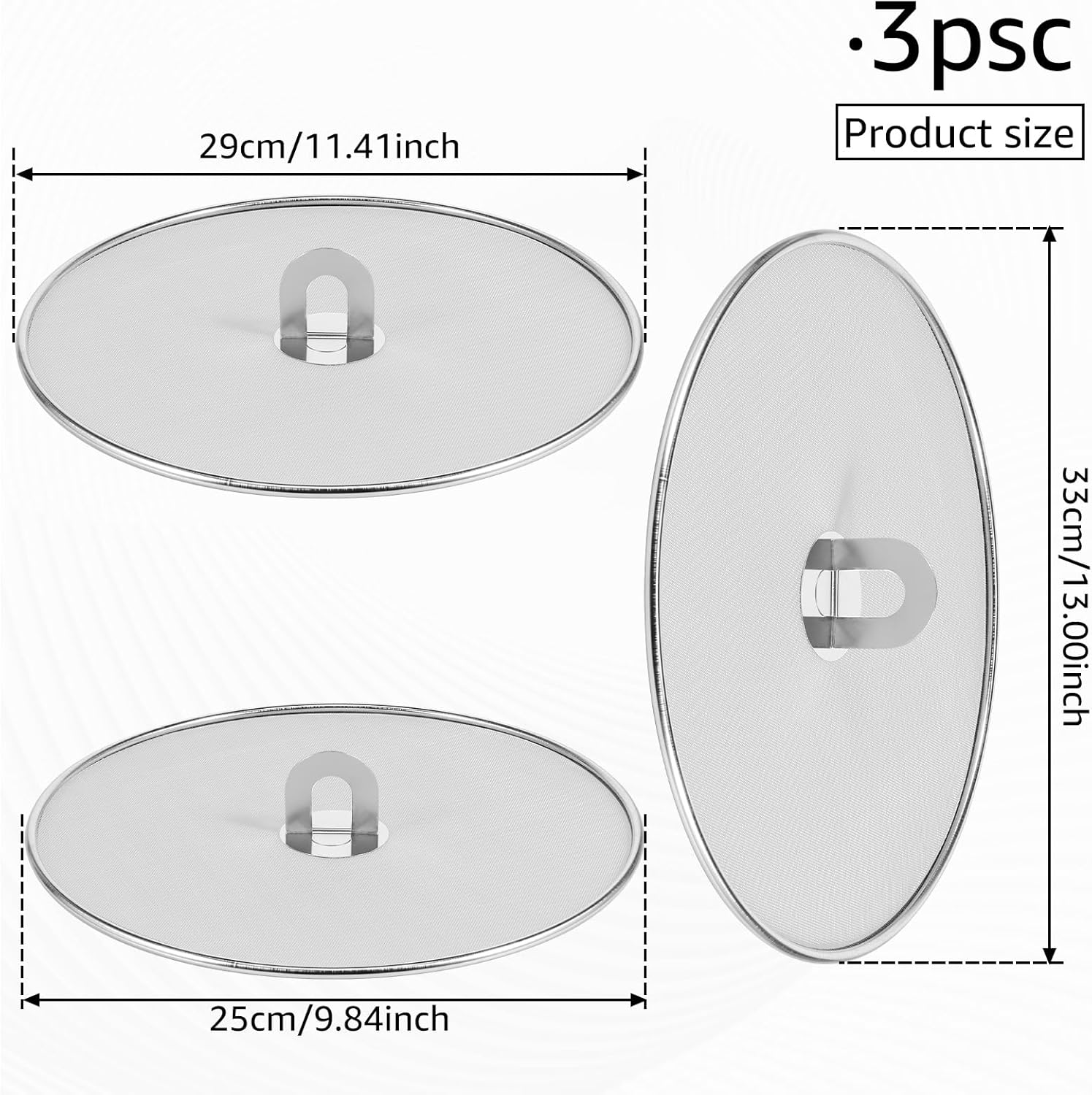 - [Set Includes] The set includes 3 different sizes of splash guard lids with diameters of 9.8in, 11.4in, and 13in. Suitable for different pans, skillets, or works to avoid greasy oil splatters and pot messes. Quantity is enough for daily use and replacement.