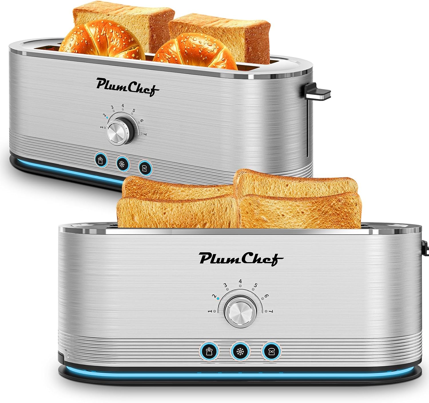 - Premium Stainless Steel Design β Built to last with a full-body stainless steel construction and brushed anti-fingerprint finish for a sleek, scratch-resistant look. The standard slot size fits most bread types, while the optional LED light strip at the base adds a modern, stylish touch to your kitchen.